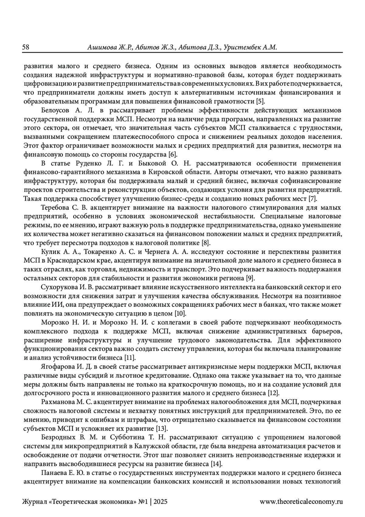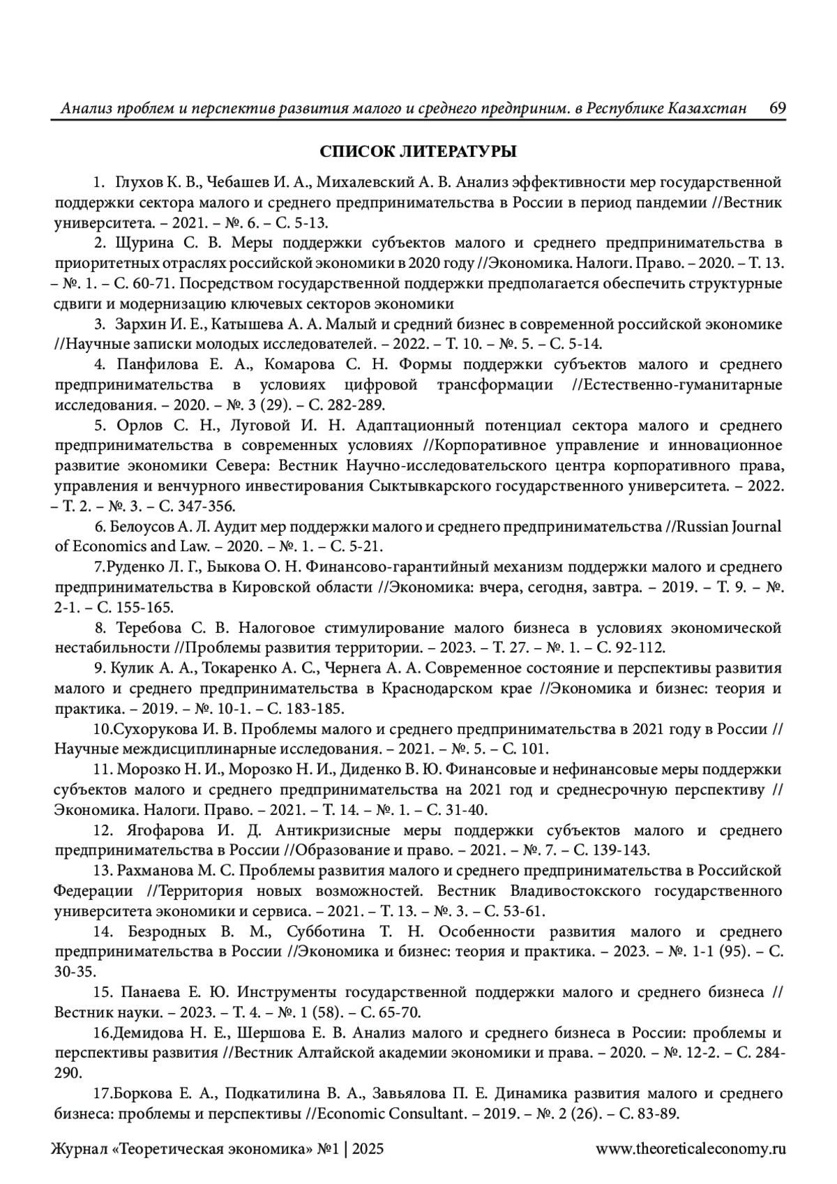 6. Белоусов А. Л. Аудит мер поддержки малого и среднего предпринимательства //Russian Journal of Economics and Law. - 2020. - №. 1. - С. 5-21. ;. DOI: 10.21202/1993-047X.14.2020.1.5-21 EDN: SRGGAL