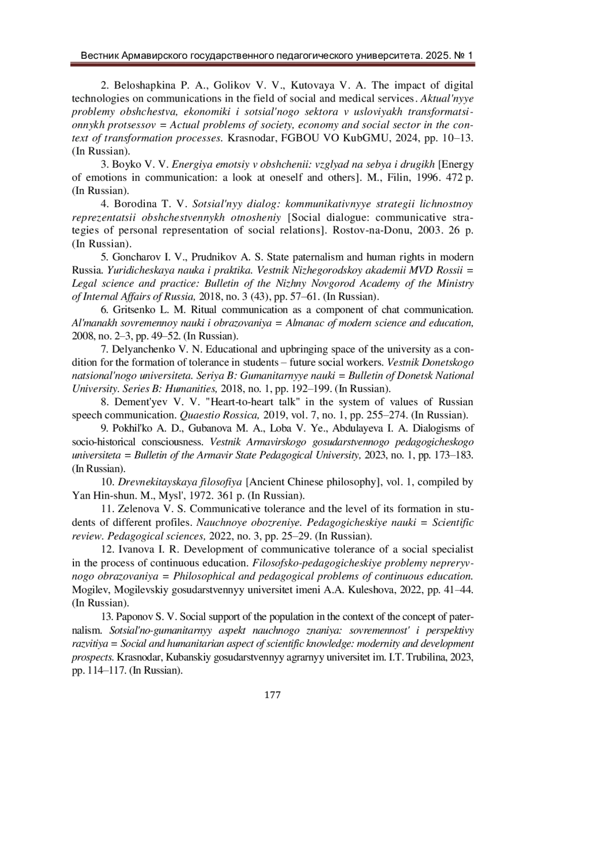 9. Диалогизмы социально-исторического сознания / А. Д. Похилько, М. А. Губанова, В. Е. Лоба, И. А. Абдулаева. - Текст: непосредственный // Вестник Армавирского государственного педагогического университета. - 2023. - № 1. - С. 173-183. EDN: UFQHTN