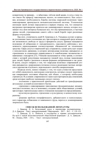2. Давыдов, Д. А. Личность и государство в терниях посткапитализма: На пути к новой антагонистической общественной формации / Д. А. Давыдов. - М.: Ленанд, 2020. - 218 с. - Текст: непосредственный.