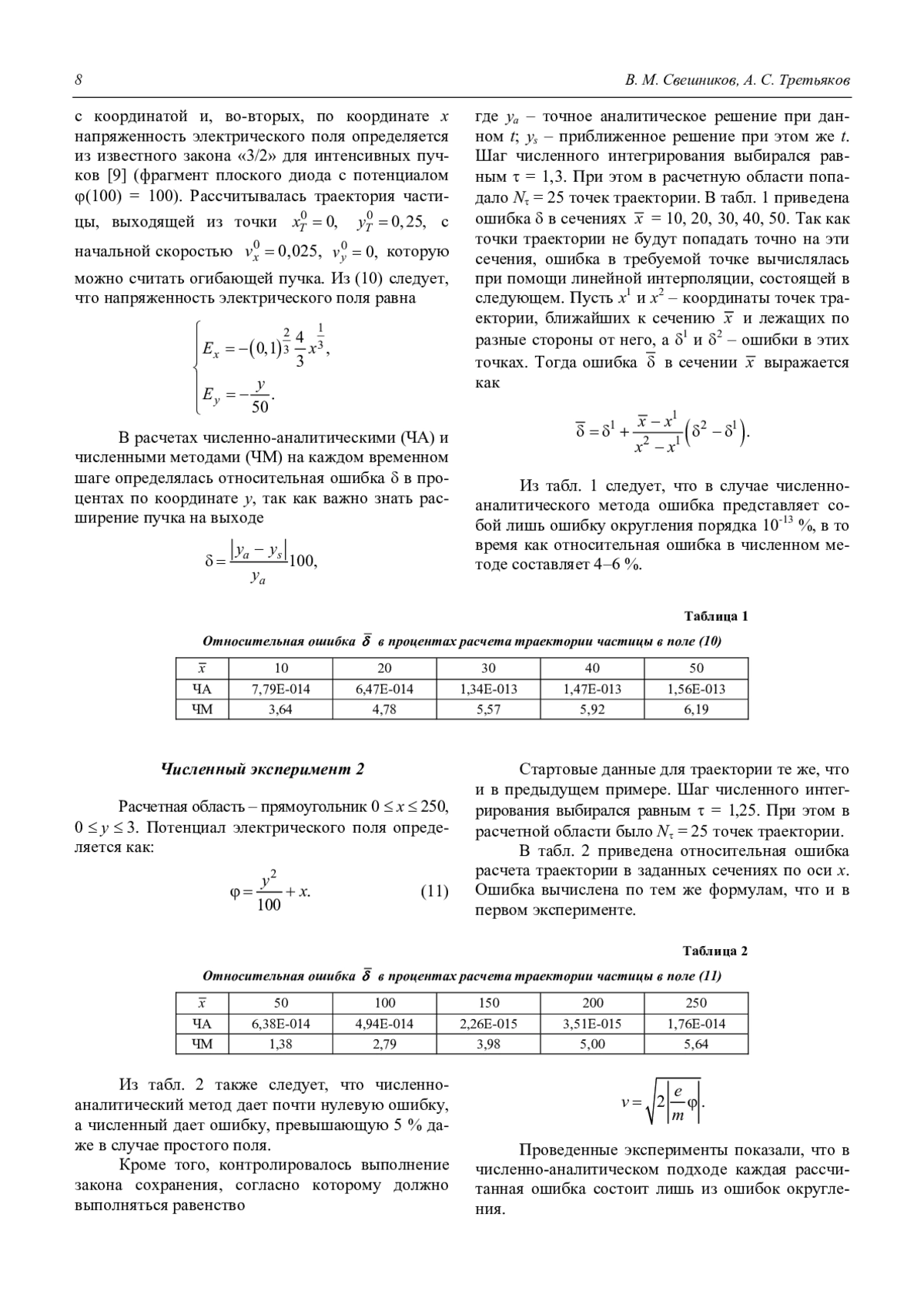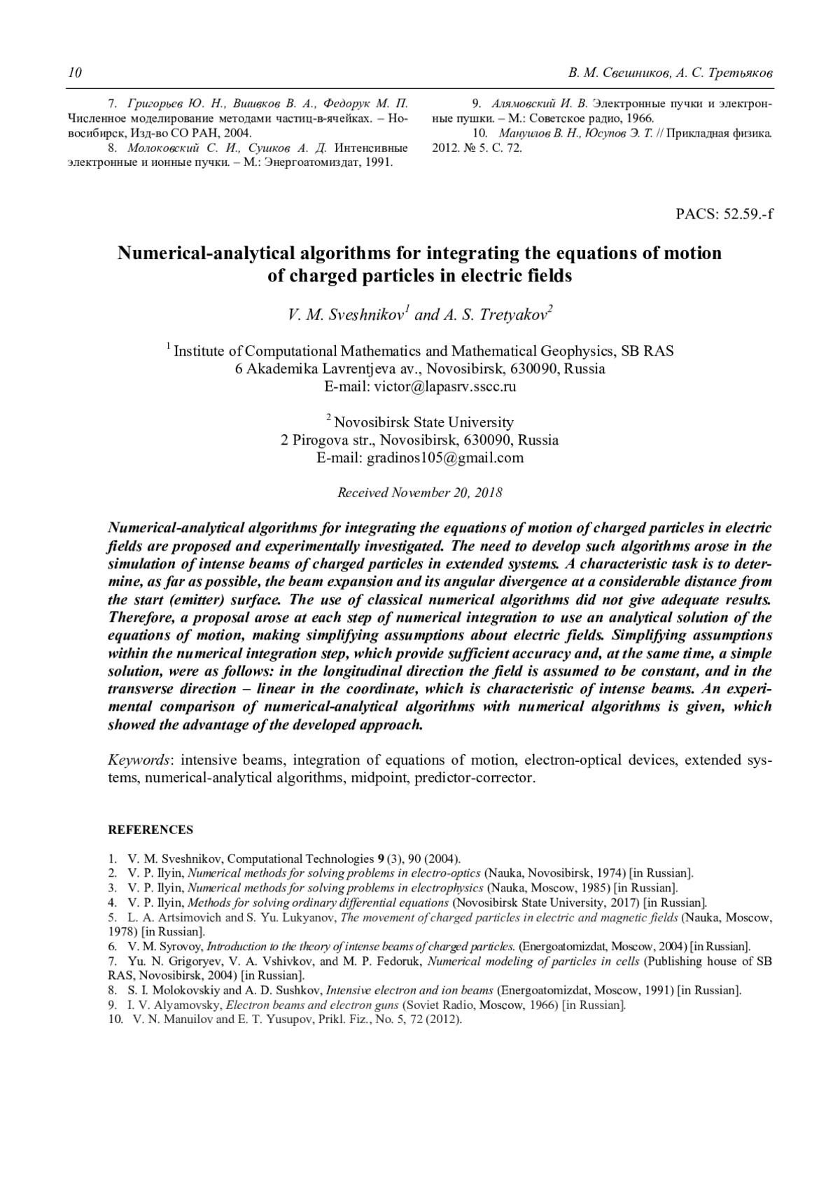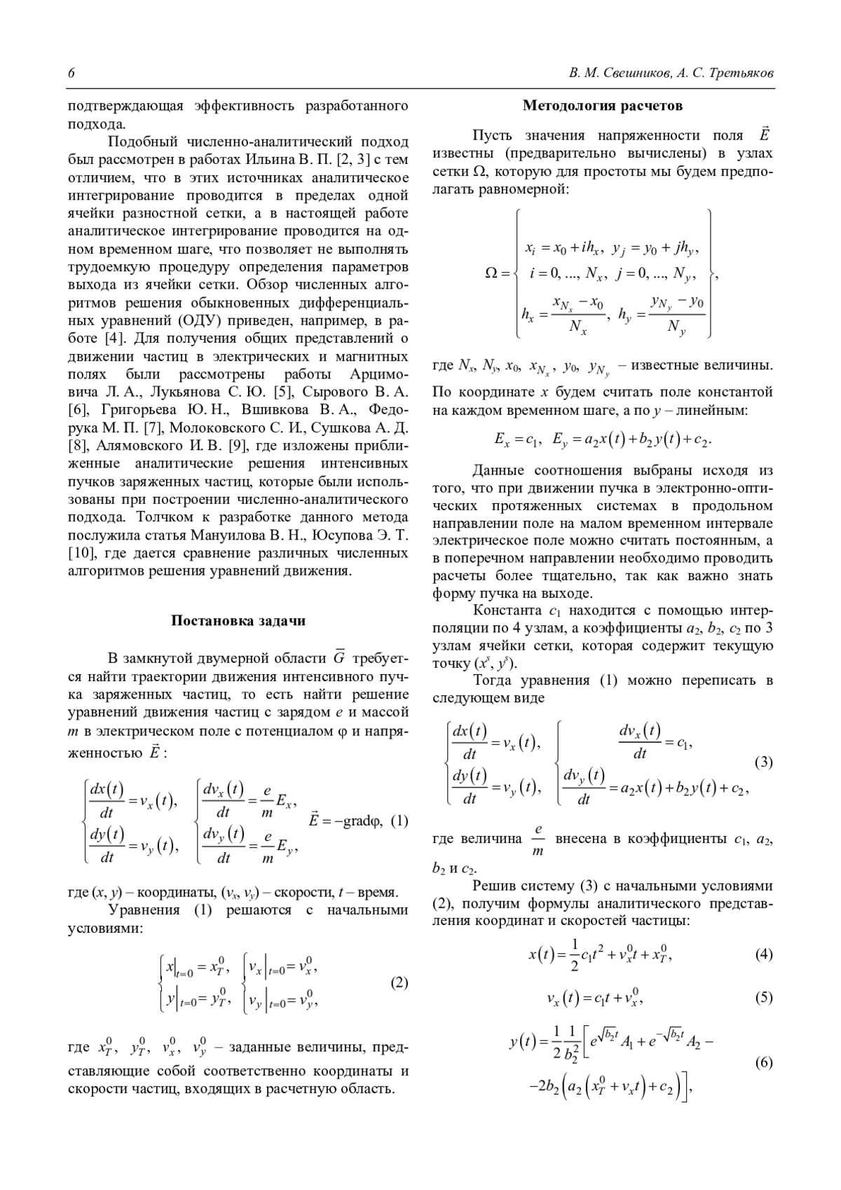 Свешников В. М., Третьяков А. С. Численно-аналитические алгоритмы интегриро-вания уравнений движения заряженных частиц в электрических полях 5