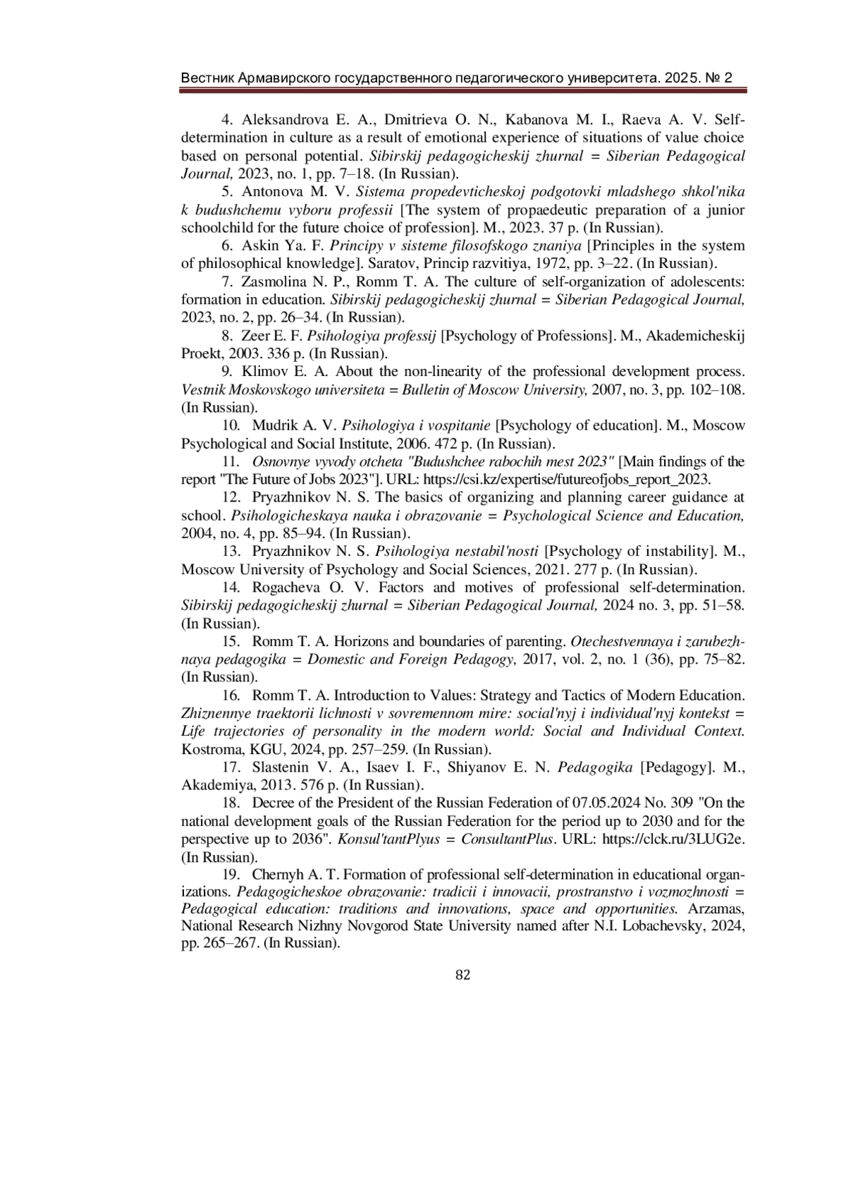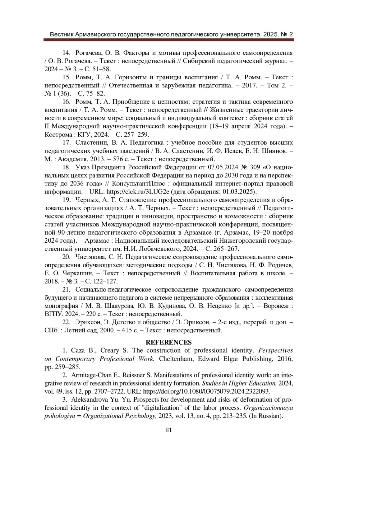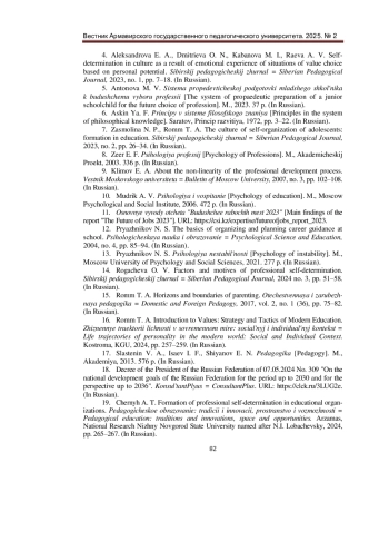 14. Рогачева, О. В. Факторы и мотивы профессионального самоопределения / О. В. Рогачева. - Текст: непосредственный // Сибирский педагогический журнал. - 2024 - № 3. - С. 51-58. EDN: FYSBHR