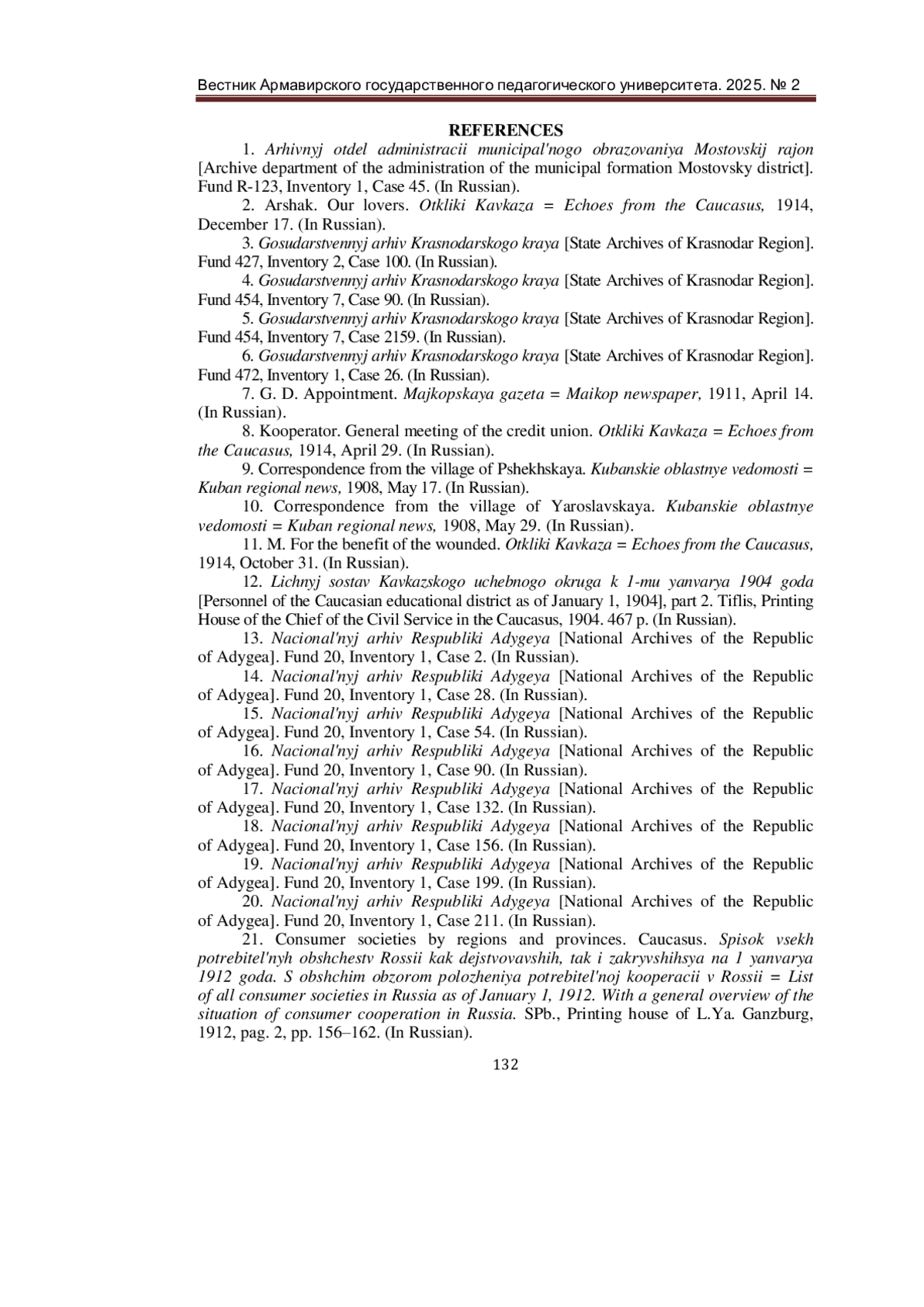 17. Национальный архив Республики Адыгея. - Ф. 20. - Оп. 1. - Д. 132. - Текст: непосредственный.
