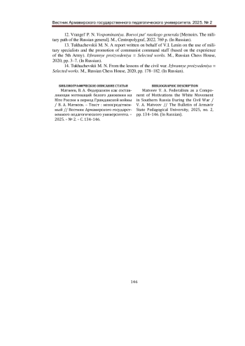 14. Тухачевский, М. Н. Из уроков гражданской войны / М. Н. Тухачевский. - Текст: непосредственный // Тухачевский М. Н. Избранные произведения. - М.: Русский шахматный дом, 2020. - С. 178-182.