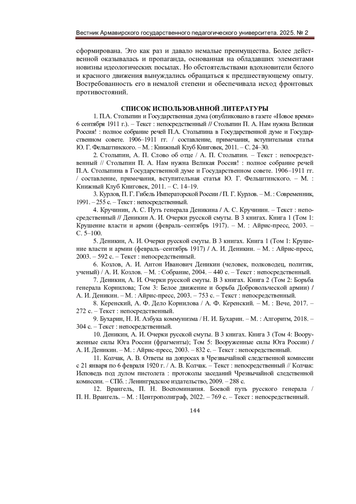 10. Деникин, А. И. Очерки русской смуты. В 3 книгах. Книга 3 (Том 4: Вооруженные силы Юга России (фрагменты); Том 5: Вооруженные силы Юга России) / А. И. Деникин. - М.: Айрис-пресс, 2003. - 832 с. - Текст: непосредственный.