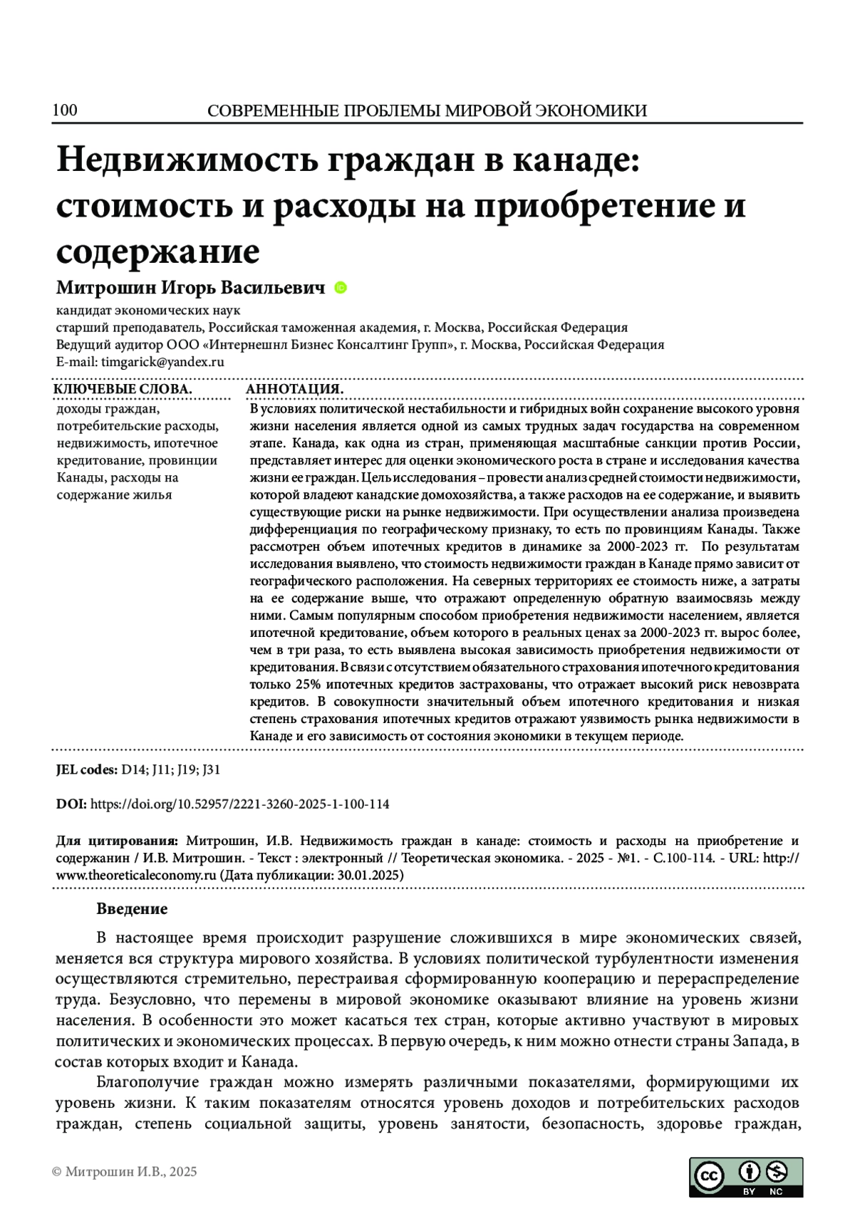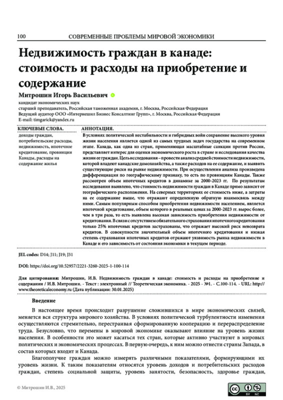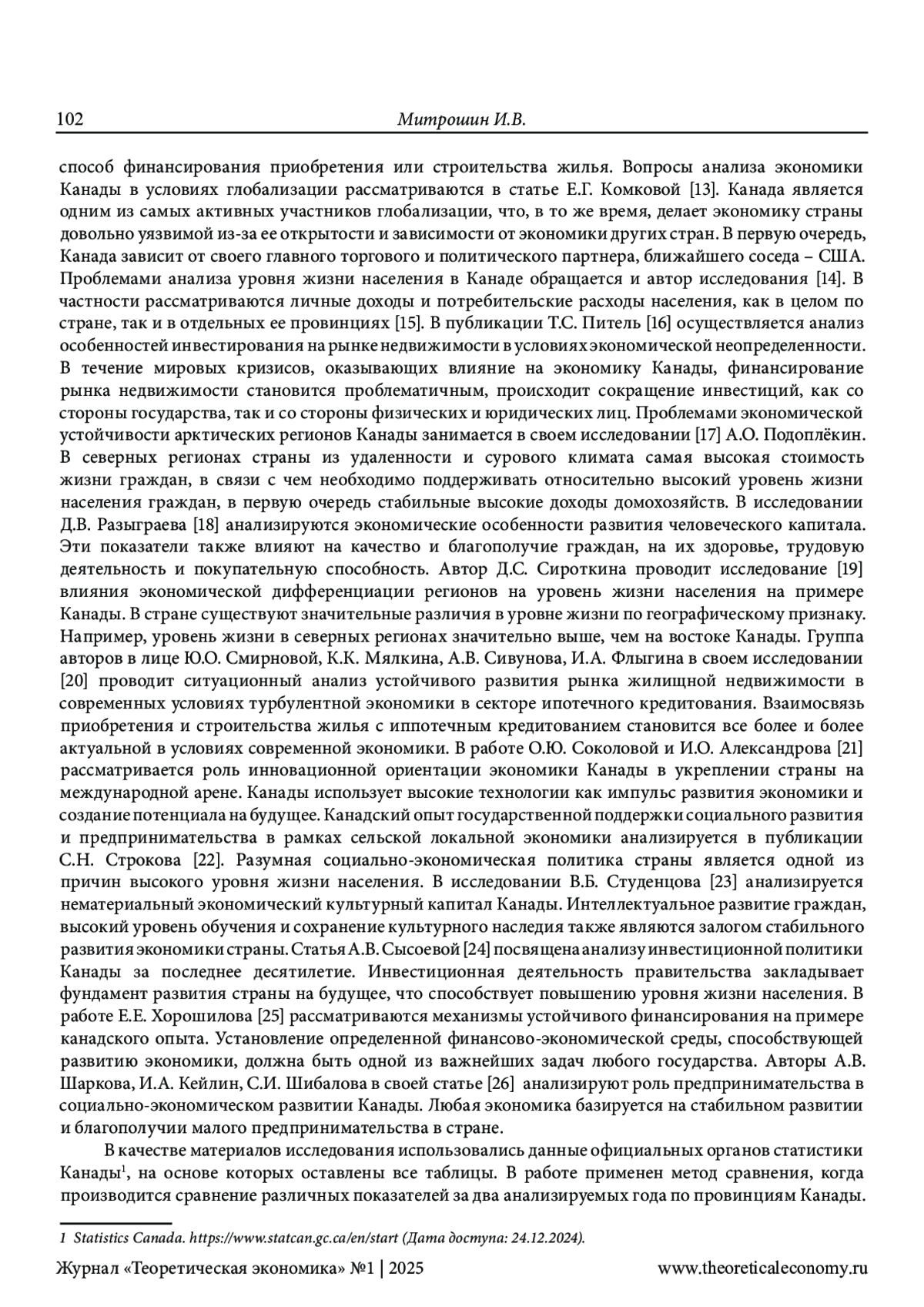 14. Митрошин И.В. Анализ доходов и потребительских расходов домохозяйств в северных провинциях Канады // Вестник Томского государственного университета. Экономика. 2023. № 64. С. 167-180. DOI: 10.17223/19988648/64/12 EDN: OETNNP