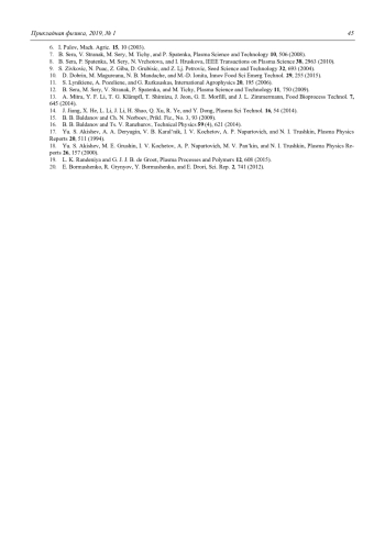 8. Sera B., Spatenka P., Sery M., Vrchotova N., Hruskova I. // IEEE Transactions on Plasma Science. 2010. Vol. 38. P. 2963. 9. Zivkovic S., Puac N., Giba Z., Grubisic D., Petrovic Z. Lj. // Seed Science and Technology. 2004. Vol. 32. P. 693.