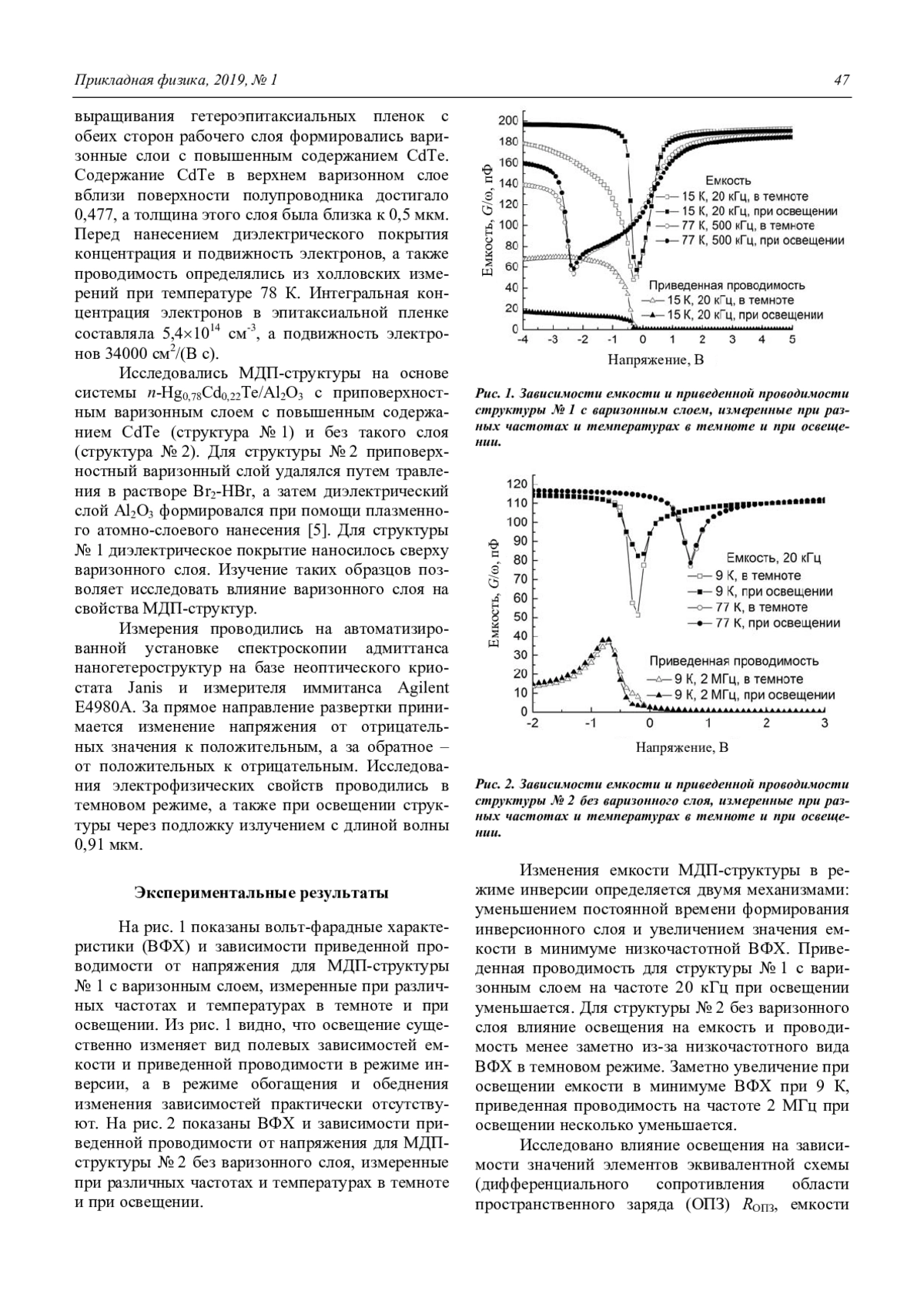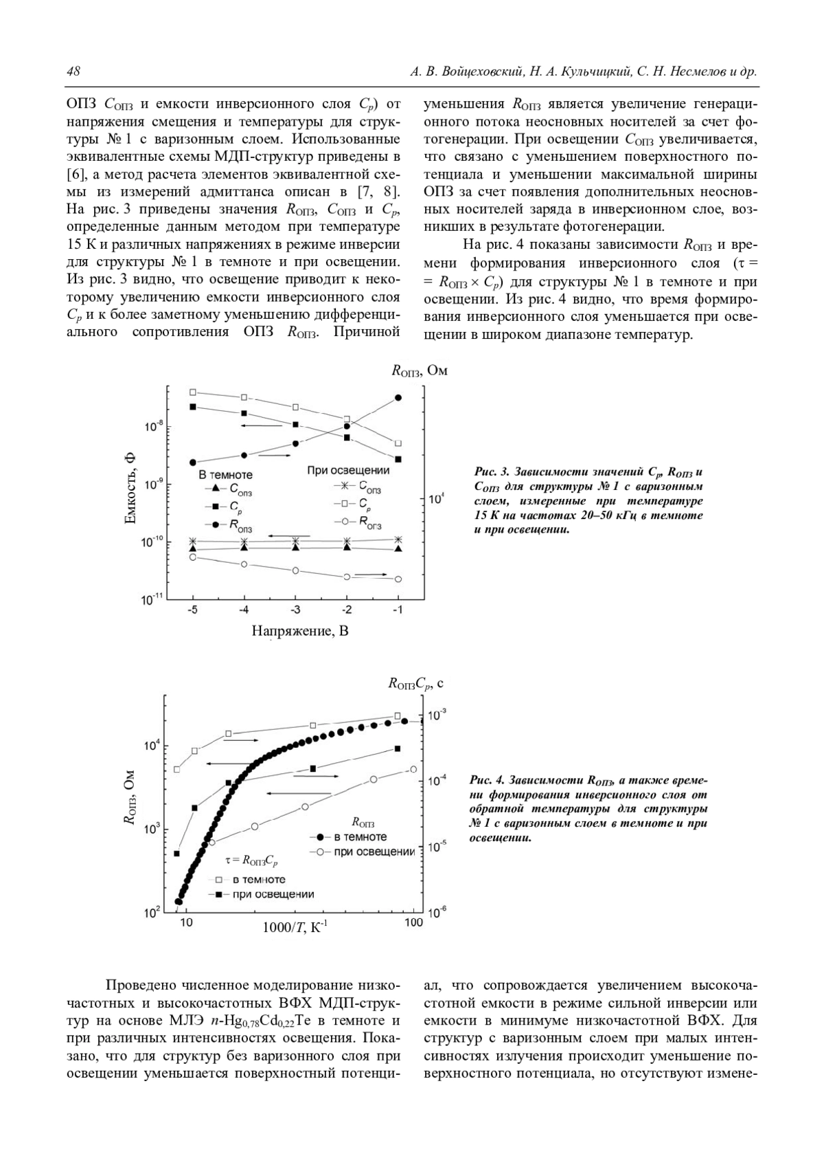 Войцеховский А. В., Кульчицкий Н. А., Несмелов С. Н., Дзядух С. М., Варавин В. С., Дворец-кий С. А., Михайлов Н. Н., Якушев М. В., Сидоров Ю. Г. Воздействие оптического излучения на адмиттанс МДП-структур на основе МЛЭ n-Hg0,78Cd0,22Te с приповерхностными варизонными слоями 46