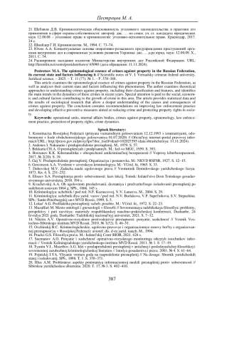 20. Хлус А.М. Проблемные аспекты понимания информационной модели преступлений против собственности // Сибирское юридическое обозрение. 2020. Т. 17, № 3. С. 402-410. EDN: ZQAXPI