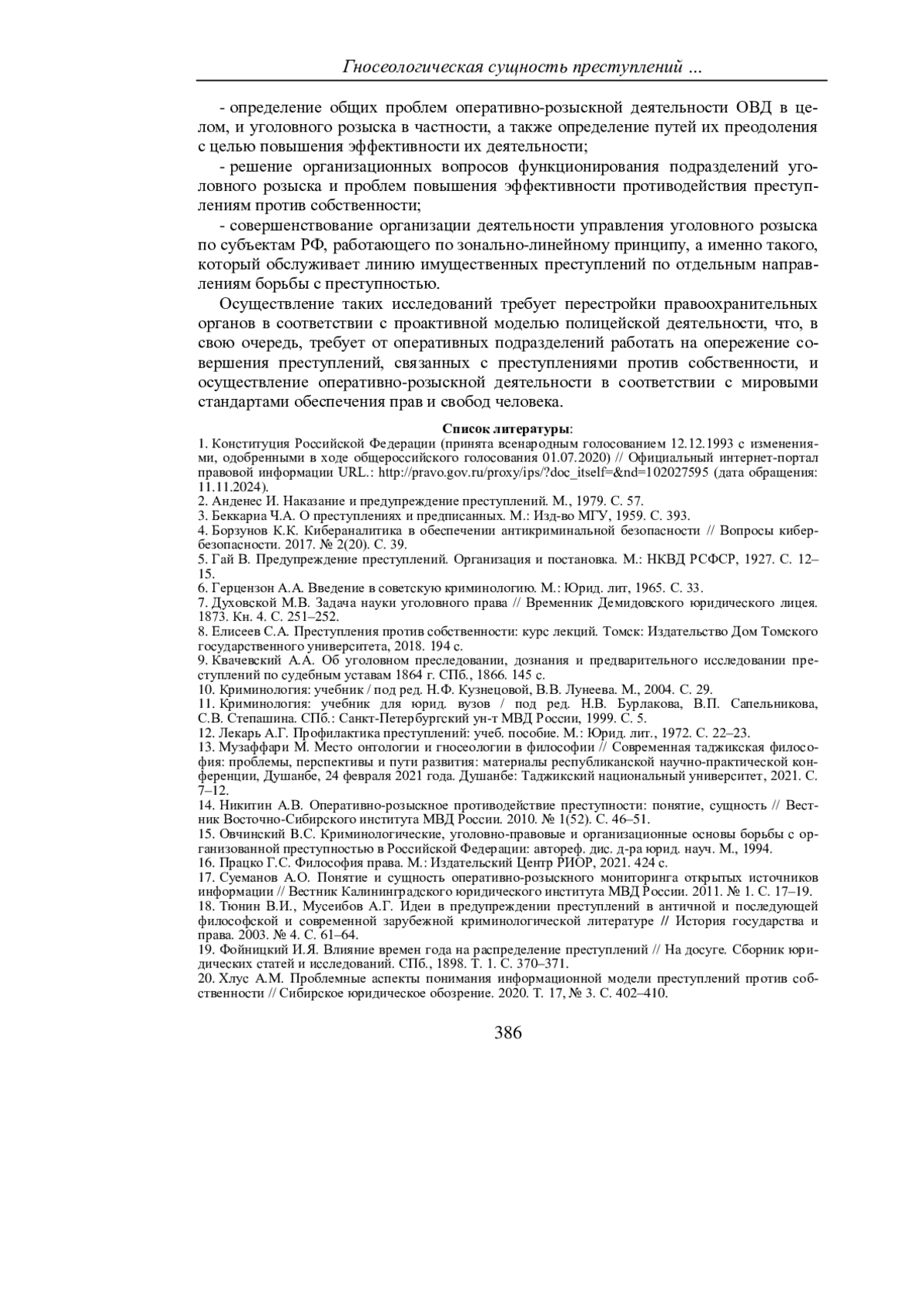 18. Тюнин В.И., Мусеибов А.Г. Идеи в предупреждении преступлений в античной и последующей философской и современной зарубежной криминологической литературе // История государства и права. 2003. № 4. С. 61-64. EDN: RTVHEL