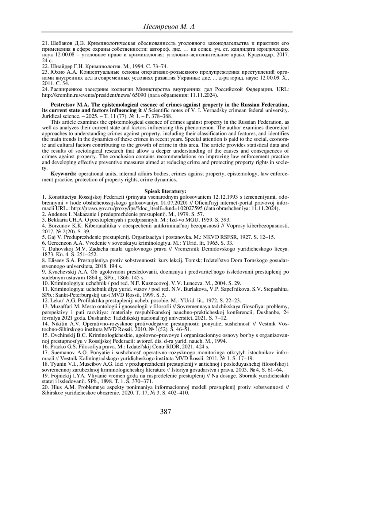 21. Шебанов Д.В. Криминологическая обоснованность уголовного законодательства и практики его применения в сфере охраны собственности: автореф. дис.. на соиск. уч. ст. кандидата юридических наук 12.00.08 - уголовное право и криминология: уголовно-исполнительное право. Краснодар, 2017. 24 с. EDN: ZQENSN