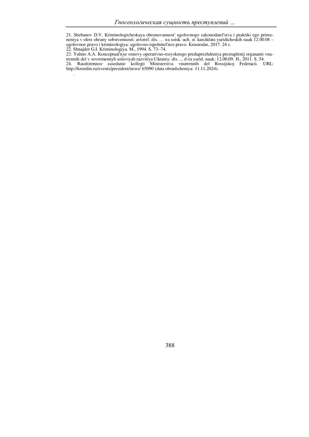23. Юхно А.А. Концептуальные основы оперативно-розыскного предупреждения преступлений органами внутренних дел в современных условиях развития Украины: дис.. д-ра юрид. наук: 12.00.09. Х., 2011. С. 54.
