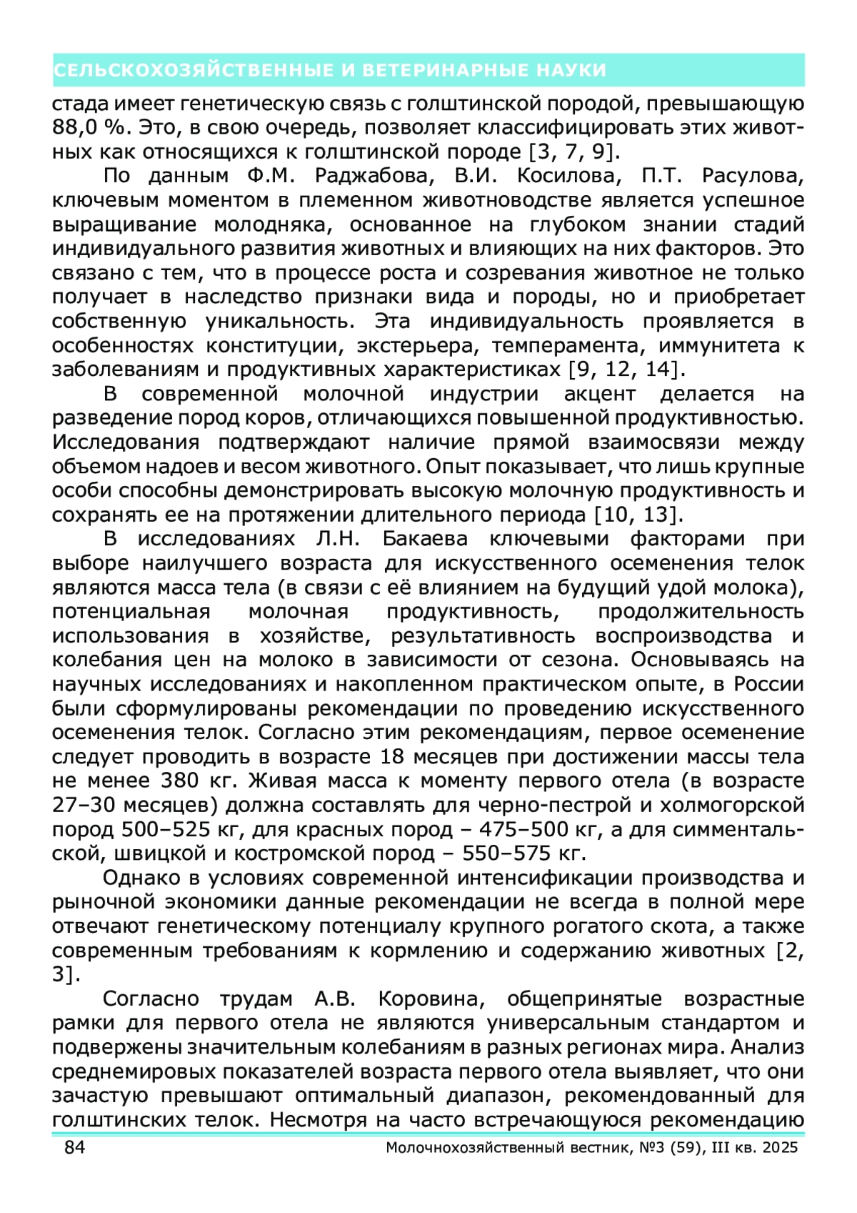 10. Косилов, В.И. Весовые параметры коров-первотёлок чёрнопёстрой, голштинской пород и их помесей / В.И. Косилов, Б.Т. Кадралиева // Известия Оренбургского ГАУ. - 2020. - № 6 (86). - С. 299-301.