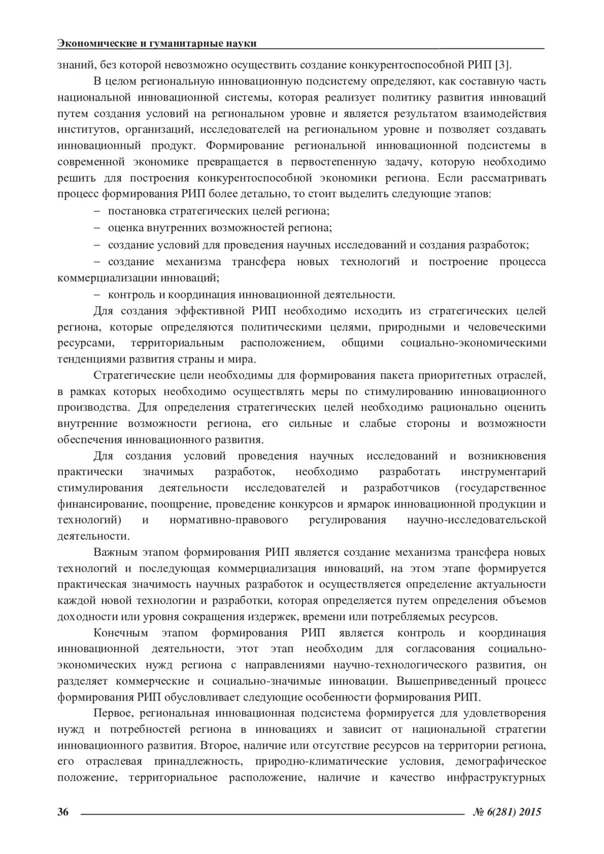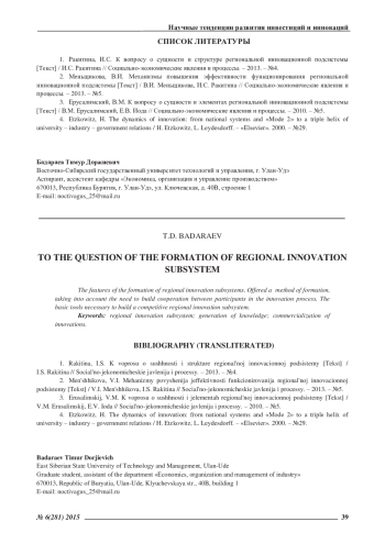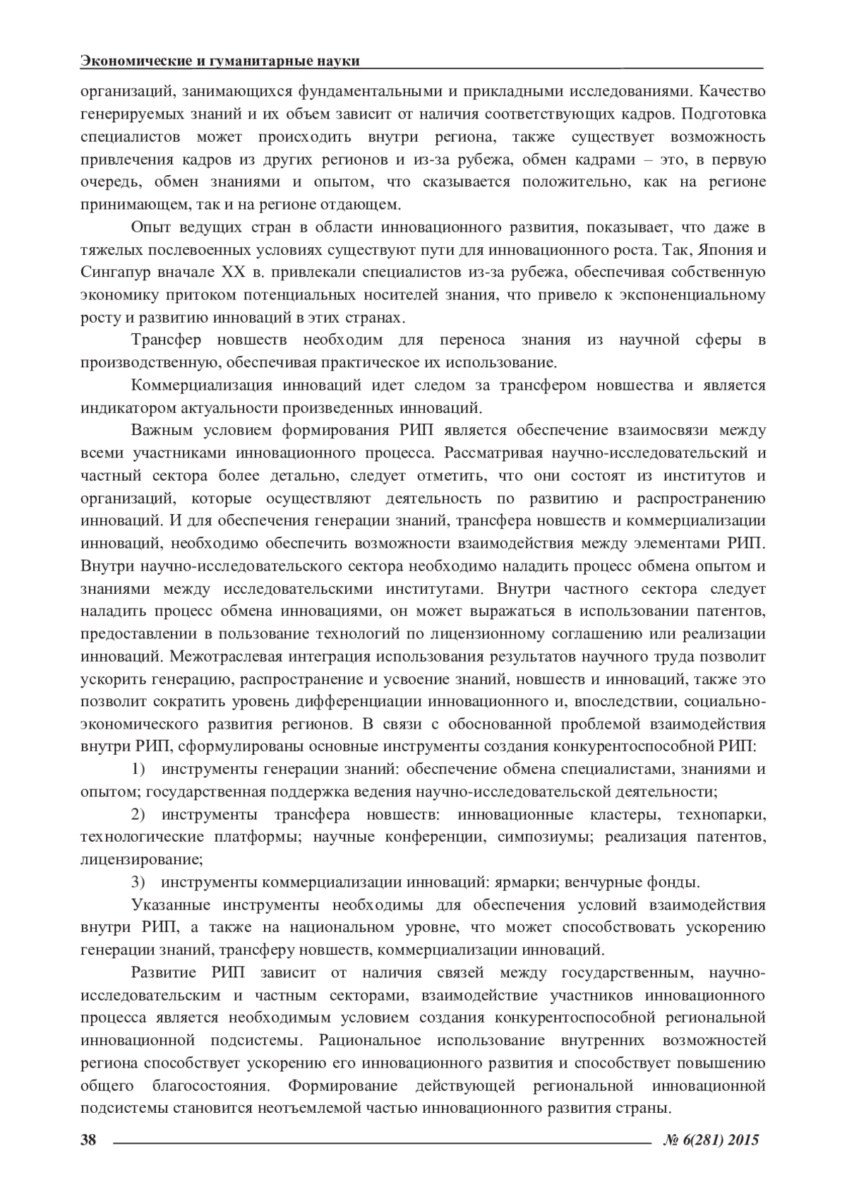 Статья: К ВОПРОСУ О ФОРМИРОВАНИИ РЕГИОНАЛЬНОЙ ИННОВАЦИОННОЙ ПОДСИСТЕМЫ (2015)