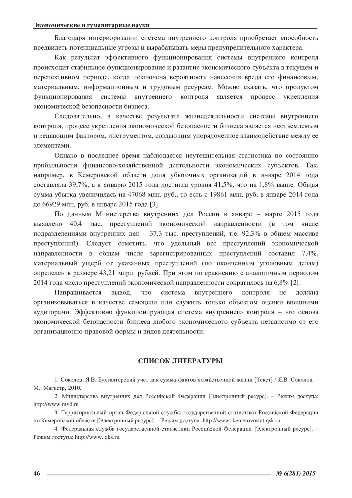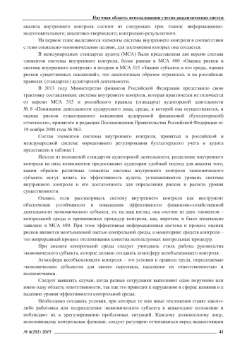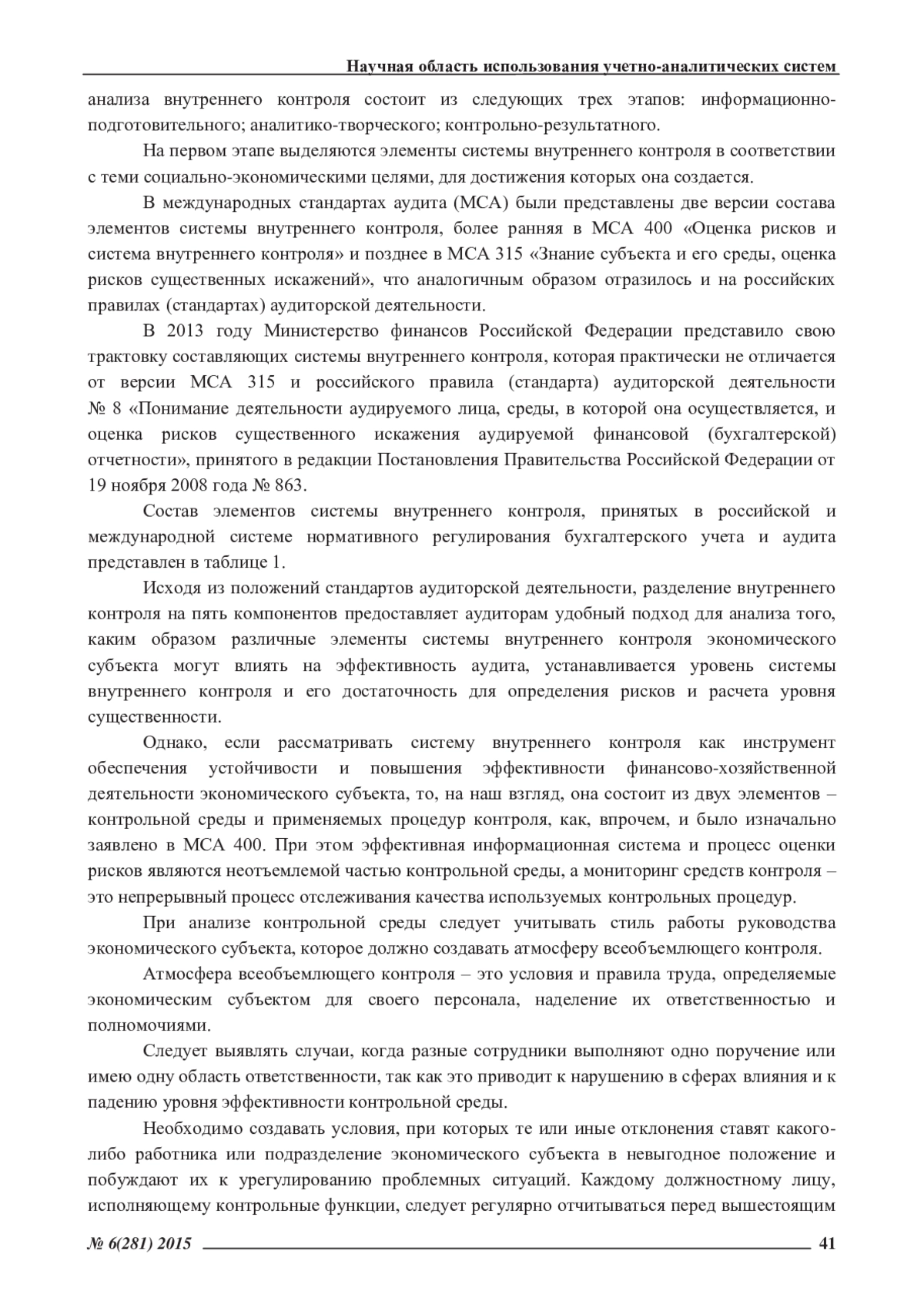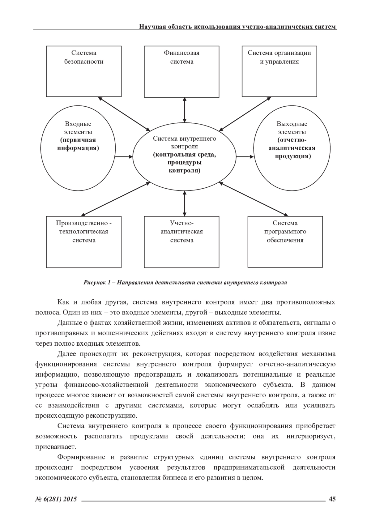 ДЫМОВА И. А. СИСТЕМНЫЙ АНАЛИЗ ЭЛЕМЕНТОВ ВНУТРЕННЕГО КОНТРОЛЯ // ЭКОНОМИЧЕСКИЕ И ГУМАНИТАРНЫЕ НАУКИ. 2015. № 6 (281)