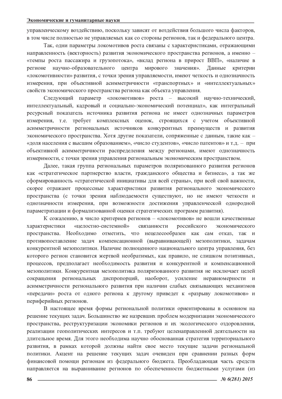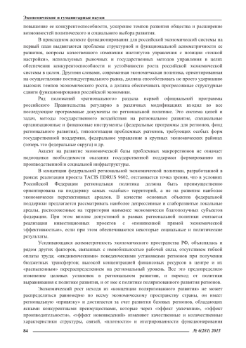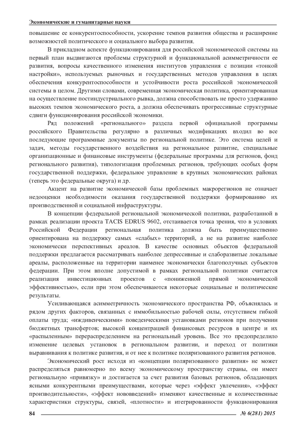 Статья: НАПРАВЛЕНИЯ РЫНОЧНОЙ ИНСТИТУЦИОНАЛИЗАЦИИ ЭКОНОМИЧЕСКОЙ ПОЛИТИКИ ГОСУДАРСТВА И РЕГИОНОВ (2015)