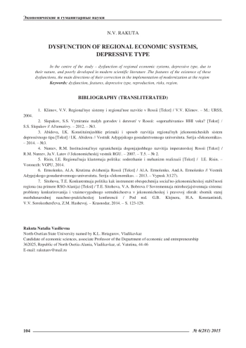 В центре исследования – дисфункции региональных экономических систем депрессивного типа, обусловленные их природой. Выявлены особенности проявления указанных дисфункций, определены основные пути их нормализации при осуществлении модернизации на региональном уровне