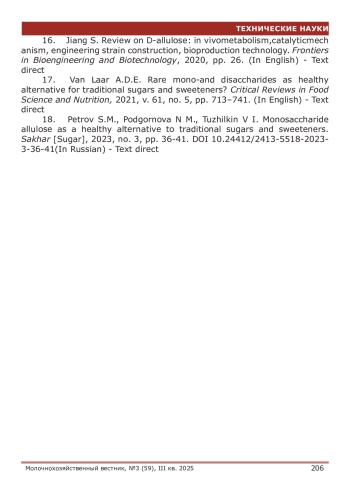 17. Van Laar A.D.E. Rare mono-and disaccharides as healthy alternative for traditional sugars and sweeteners? Critical Reviews in Food Science and Nutrition, 2021, v. 61, no. 5, pp. 713-741. (In English) - Text direct.