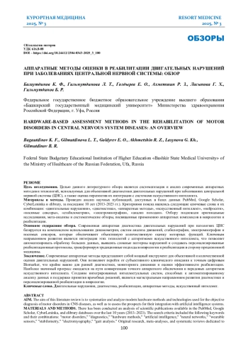 Цель исследования. Целью данного литературного обзора является систематизация и анализ современных аппаратных методов и технологий, используемых для объективной диагностики двигательных нарушений при заболеваниях центральной нервной системы (ЦНС), а также оценка перспектив их интеграции с системами искусственного интеллекта.