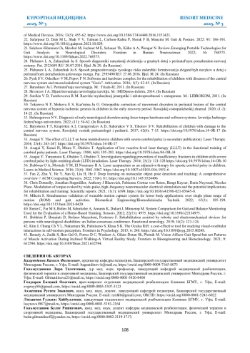 24. Пыж С. В., Осколков В. М., Попов Ф. Н. Программно-аппаратный комплекс для реабилитации детей с заболеваниями центральной нервной системы и опорно-двигательного аппарата“ Gesis“. Архивариус. 2016; 1(5): 42-45. 27. Барашнев Ю. И. Перинатальная неврология. М.: Триада-Х; 2011.
