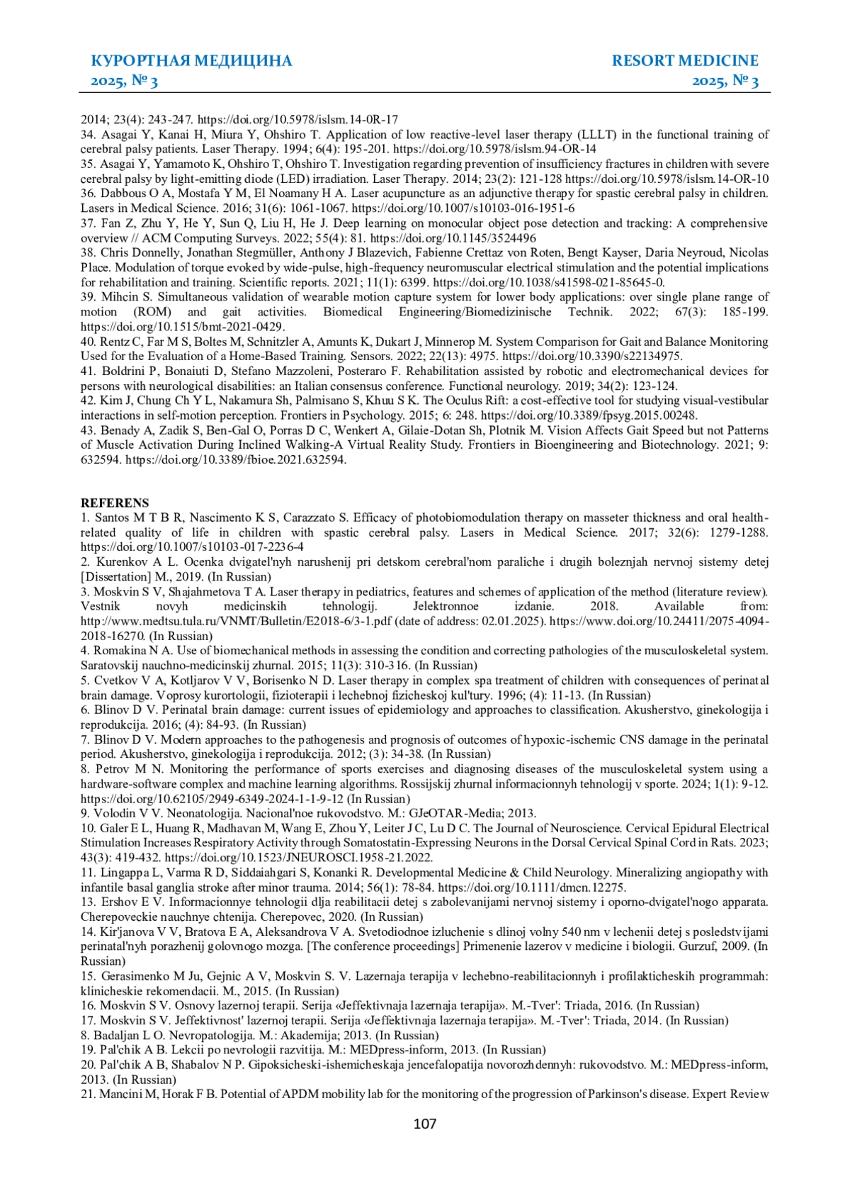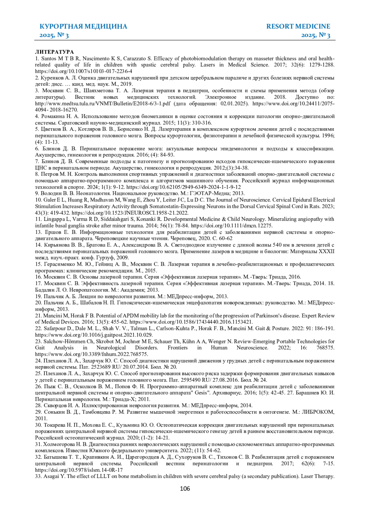 3. Москвин С. В., Шаяхметова Т. А. Лазерная терапия в педиатрии, особенности и схемы применения метода (обзор литературы). Вестник новых медицинских технологий. Электронное издание. 2018. Доступно по: http://www.medtsu.tula.ru/VNMT/Bulletin/E2018-6/3-1.pdf (дата обращения: 02.01.2025). https://www.. DOI: 10.24411/2075-4094-2018-16270