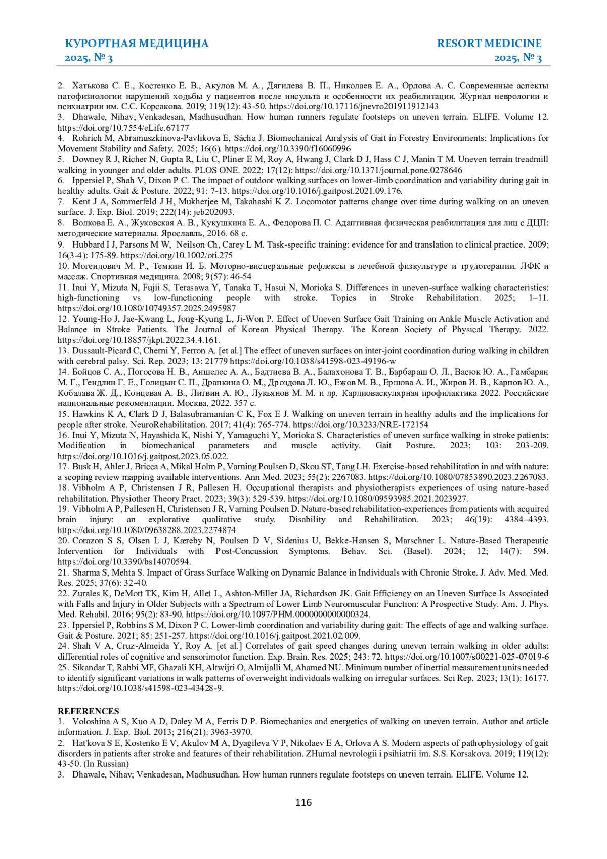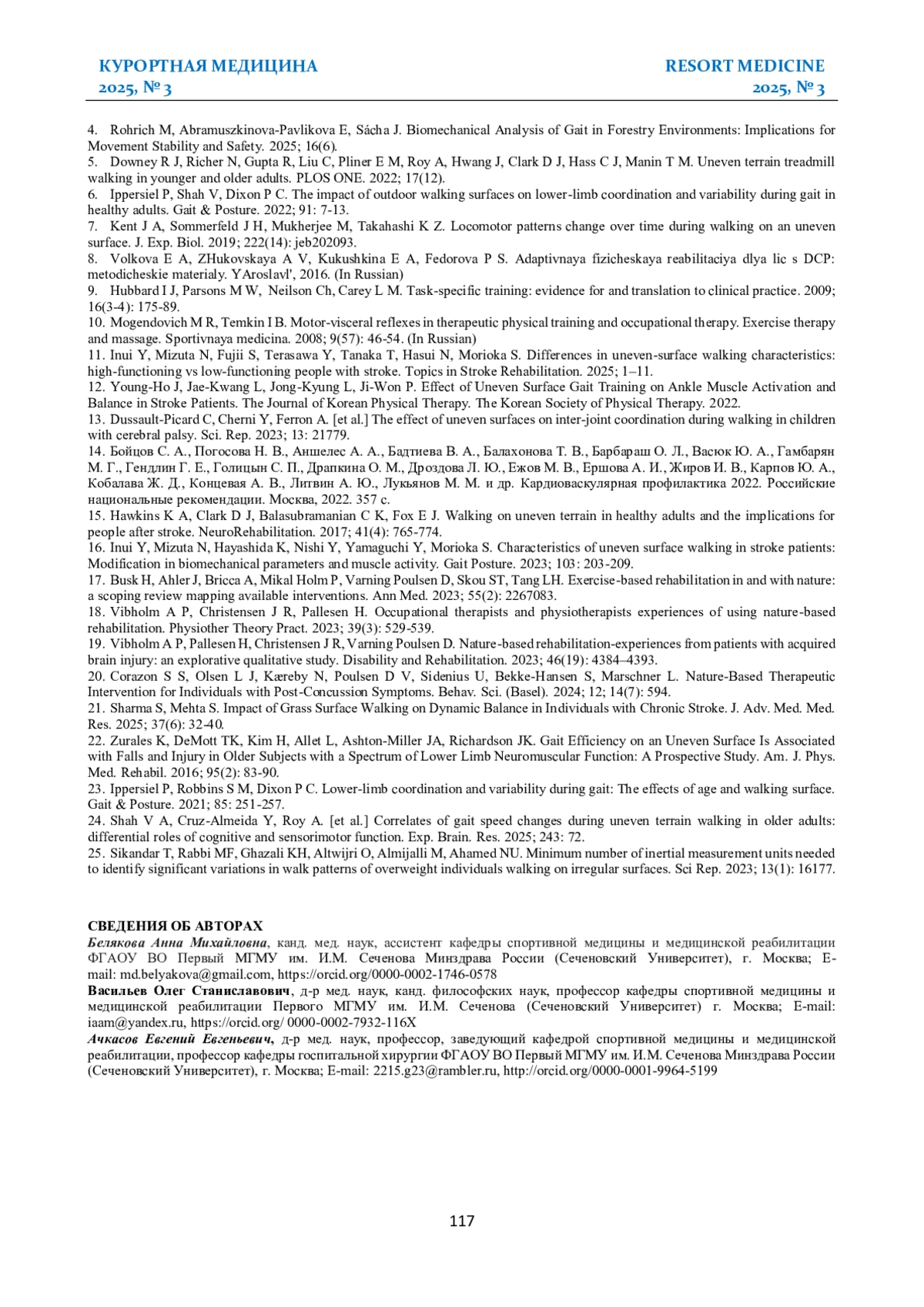 24. Shah V A, Cruz-Almeida Y, Roy A. [et al.] Correlates of gait speed changes during uneven terrain walking in older adults: differential roles of cognitive and sensorimotor function. Exp. Brain. Res. 2025; 243: 72. DOI: 10.1007/s00221-025-07019-6