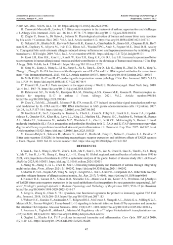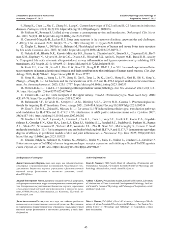 21. Grassin-Delyle S., Salvator H., Mantov N., Abrial C., Brollo M., Faisy C., Naline E., Couderc L.J., Devillier P. Bitter taste receptors (TAS2Rs) in human lung macrophages: receptor expression and inhibitory effects of TAS2R agonists // Fr ont. Physiol. 2019. Vol.10. Article number:1267.