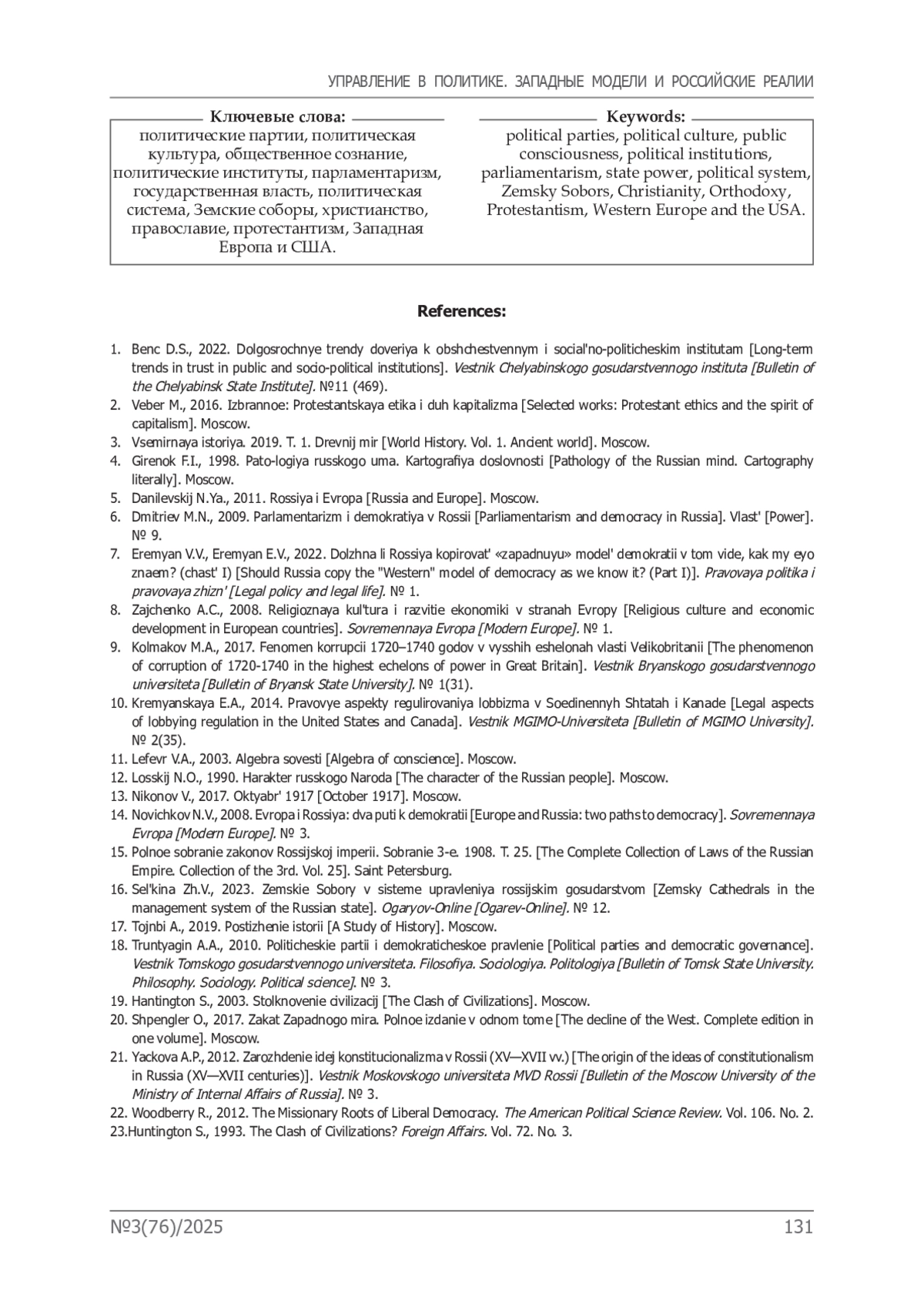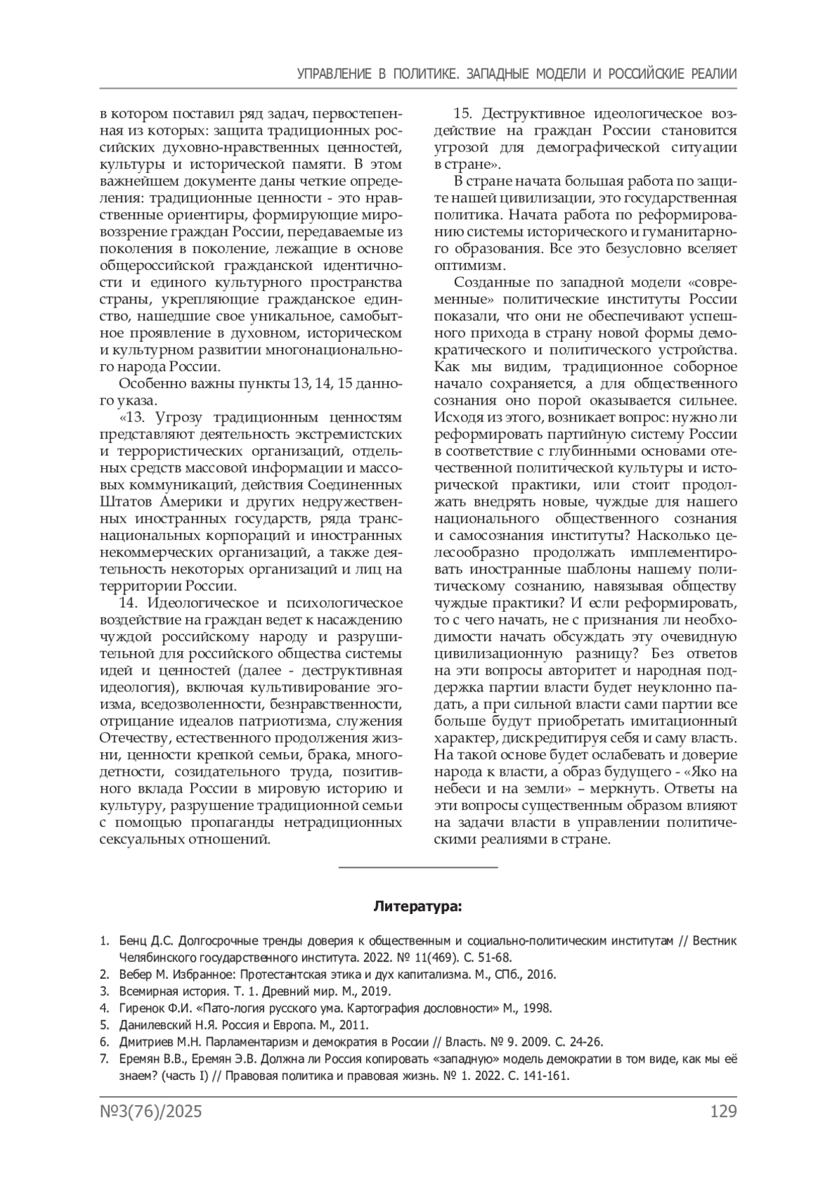 7. Еремян В.В., Еремян Э.В. Должна ли Россия копировать «западную» модель демократии в том виде, как мы её знаем? (часть I) // Правовая политика и правовая жизнь. № 1. 2022. С. 141-161.