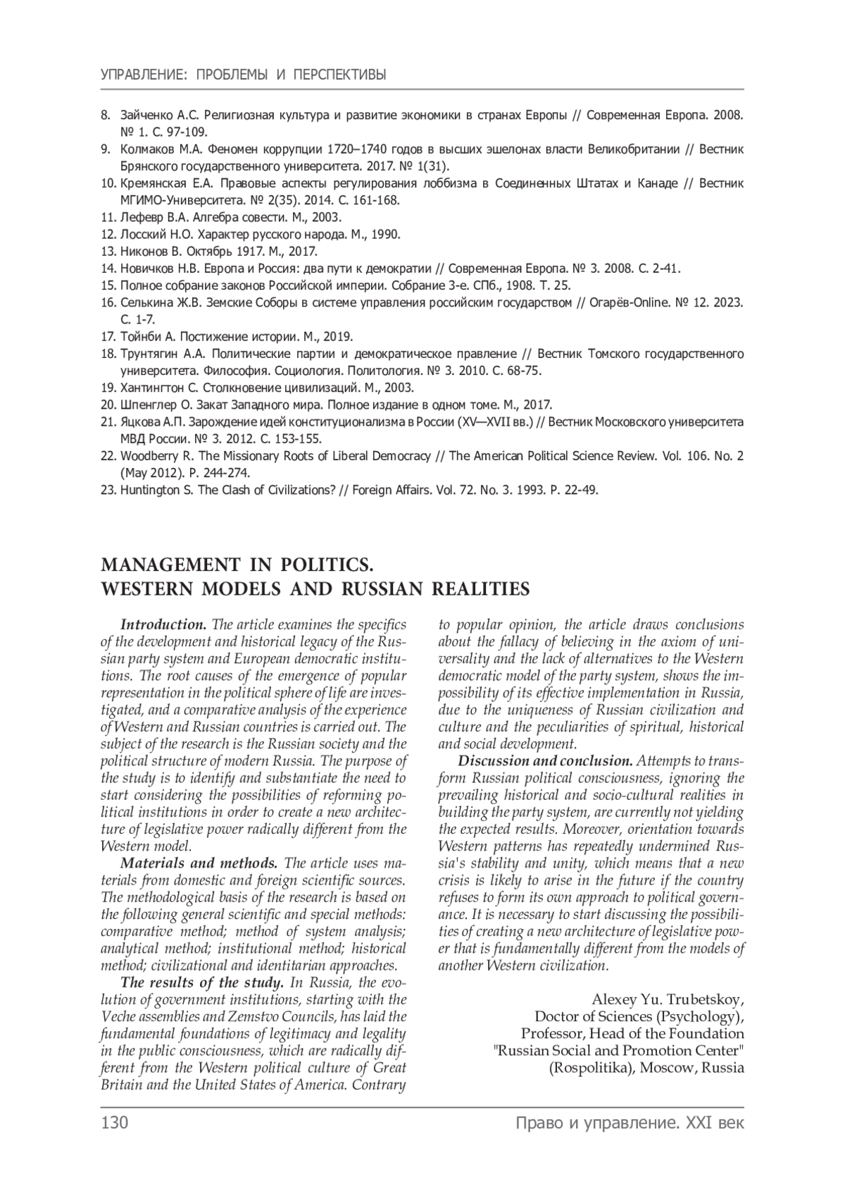18. Трунтягин А.А. Политические партии и демократическое правление // Вестник Томского государственного университета. Философия. Социология. Политология. № 3. 2010. С. 68-75.