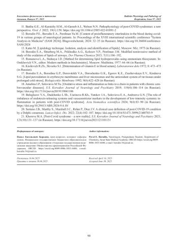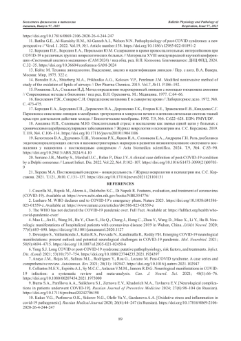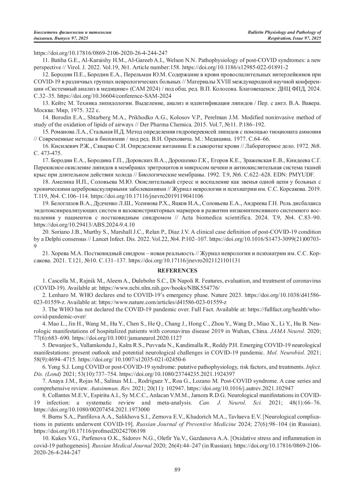 11. Batiha G.E., Al-Kuraishy H.M., Al-Gareeb A.I., Welson N.N. Pathophysiology of post-COVID syndromes: a new perspective // Virol. J. 2022. Vol.19, №1. Article number:158. DOI: 10.1186/s12985-022-01891-2
