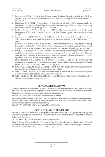 10. Novikova I. A. Ethno-national attitudes as intercultural competence predictors in university students: Gender differences (Этнонациональные установки как предикторы межкультурной компетентности студентов вузов: гендерные различия) // Behavioral Sciences. 2020. Vol. 10. № 2. P. 56.