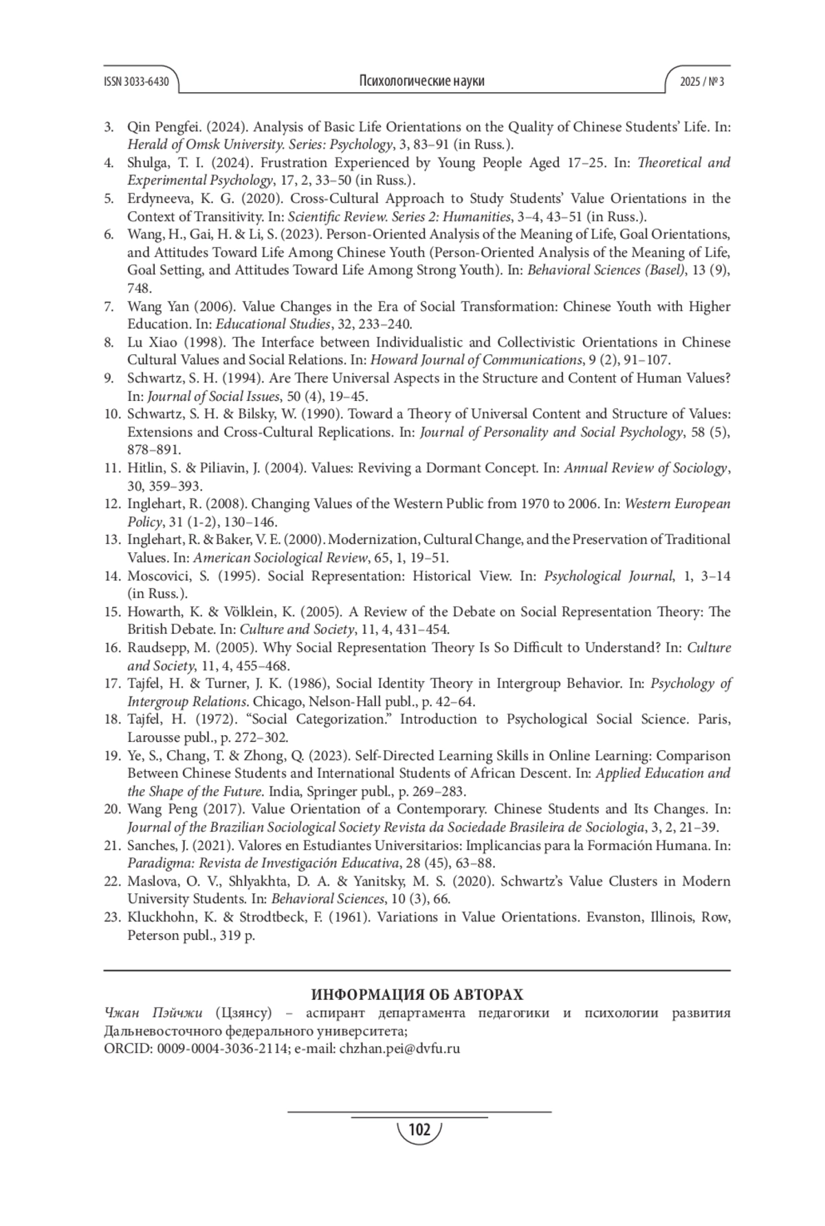 20. Wang Peng. Values orientation of contemporary. Chinese college students and its changes (Ценностная ориентация современника. Китайские студенты и её изменения) // Journal of the Brazilian Sociological Society Revista da Sociedade Brasileira de Sociologia. 2017. Vol. 3. № 2. P. 21- 39.