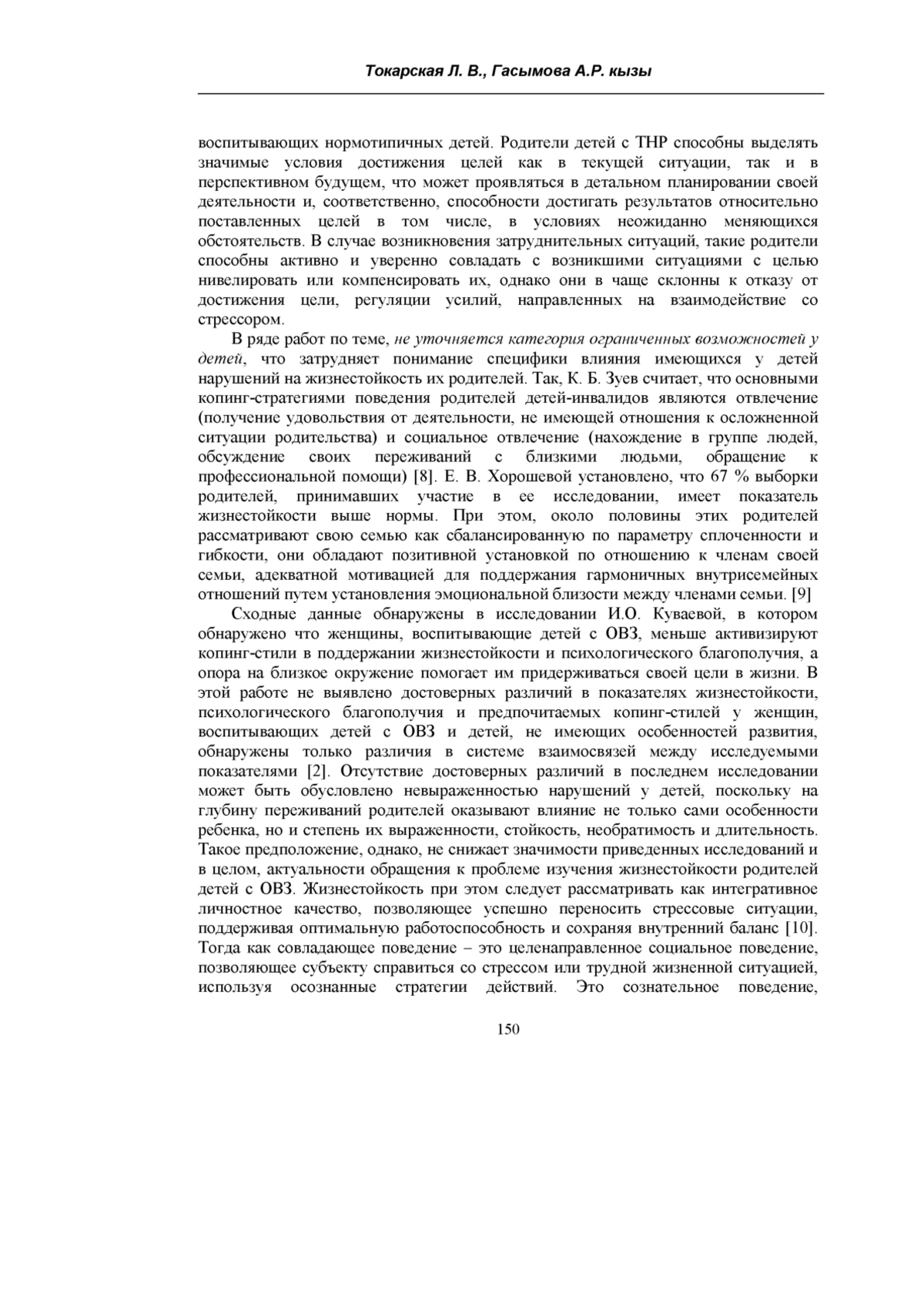 7. Токарская Л.В. Исследование жизнестойкости родителей, воспитывающих детей с тяжелыми нарушениями речи / Л.В. Токарская, Т.Р. Тенкачева, В.В. Лаптева. // Педагогическое образование в России. - 2021. - № 6. - С. 80-90.