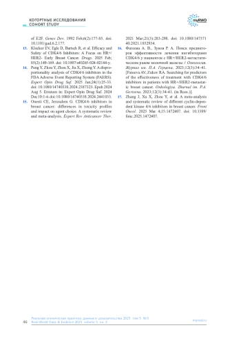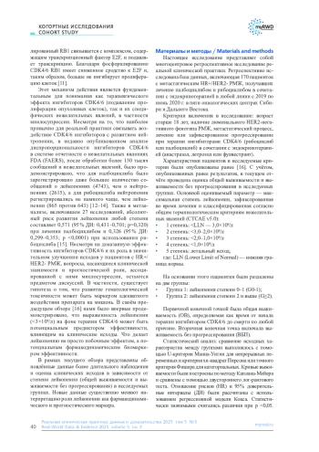 Цель. Ретроспективное изучение в исследуемой когорте возможных предикторов эффективности CDk4/6 ингибиторов в условиях реальной клинической практики.
