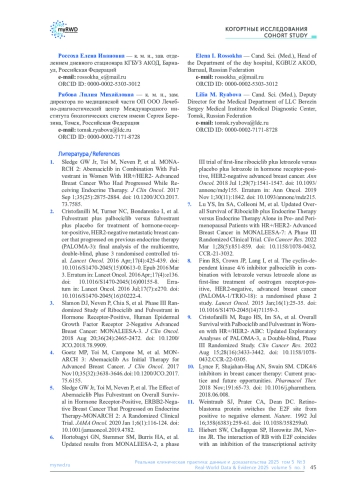 Статья: Фармакодинамический подход к оценке лейкопении, как маркёра эффективности терапии ингибиторами CDK4/6 у пациенток с HR+/HER2- метастатическим раком молочной железы: многоцентровое исследование реальной клинической практики (2025)