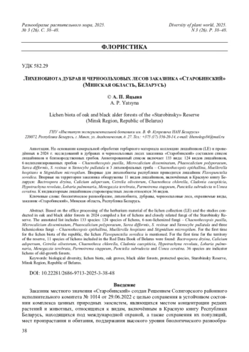 ЯЦЫНА А. П. ЛИХЕНОБИОТА ДУБРАВ И ЧЕРНООЛЬХОВЫХ ЛЕСОВ ЗАКАЗНИКА «СТАРОБИНСКИЙ» (МИНСКАЯ ОБЛАСТЬ, БЕЛАРУСЬ) // РАЗНООБРАЗИЕ РАСТИТЕЛЬНОГО МИРА. 2025. № 3 (26)