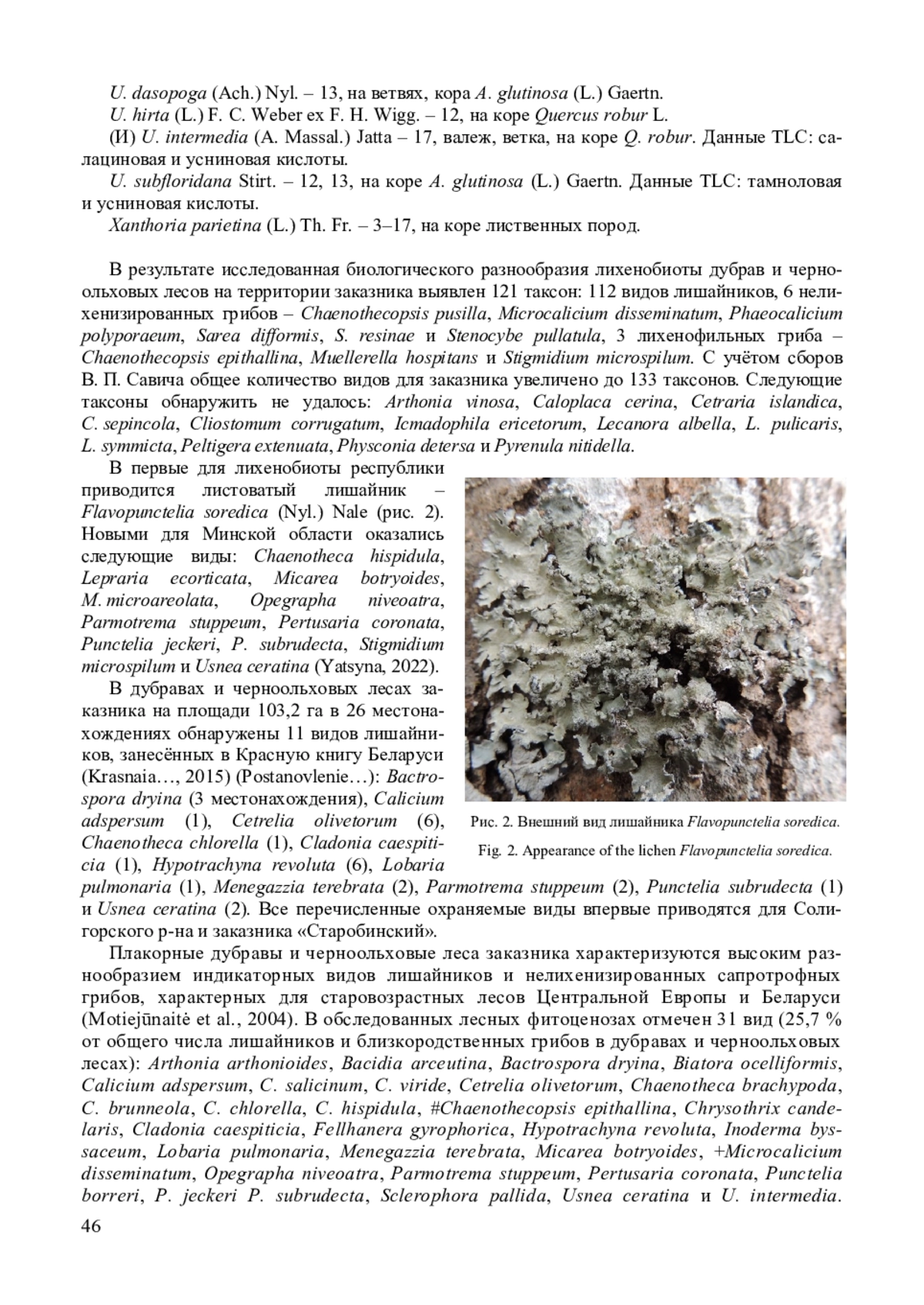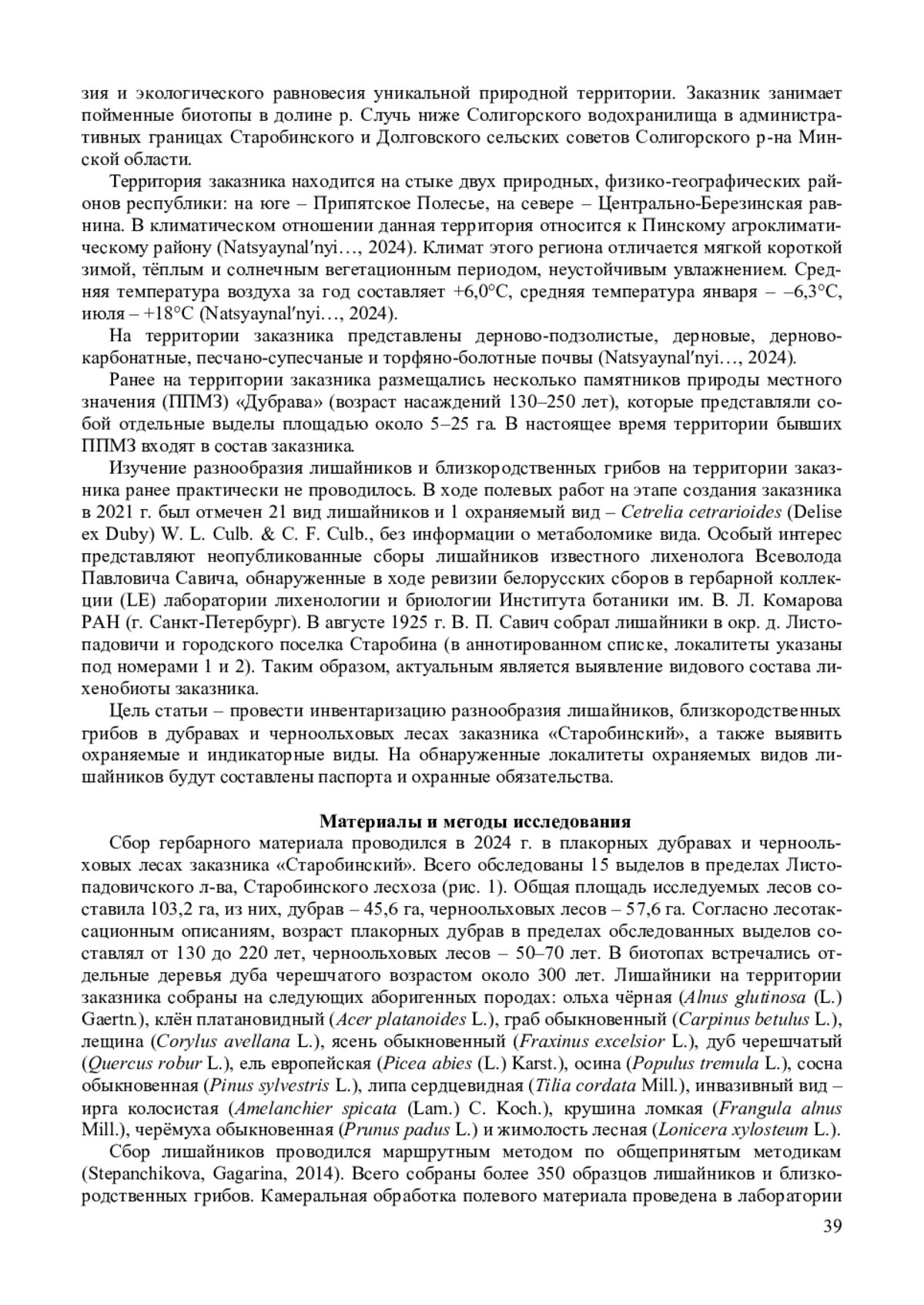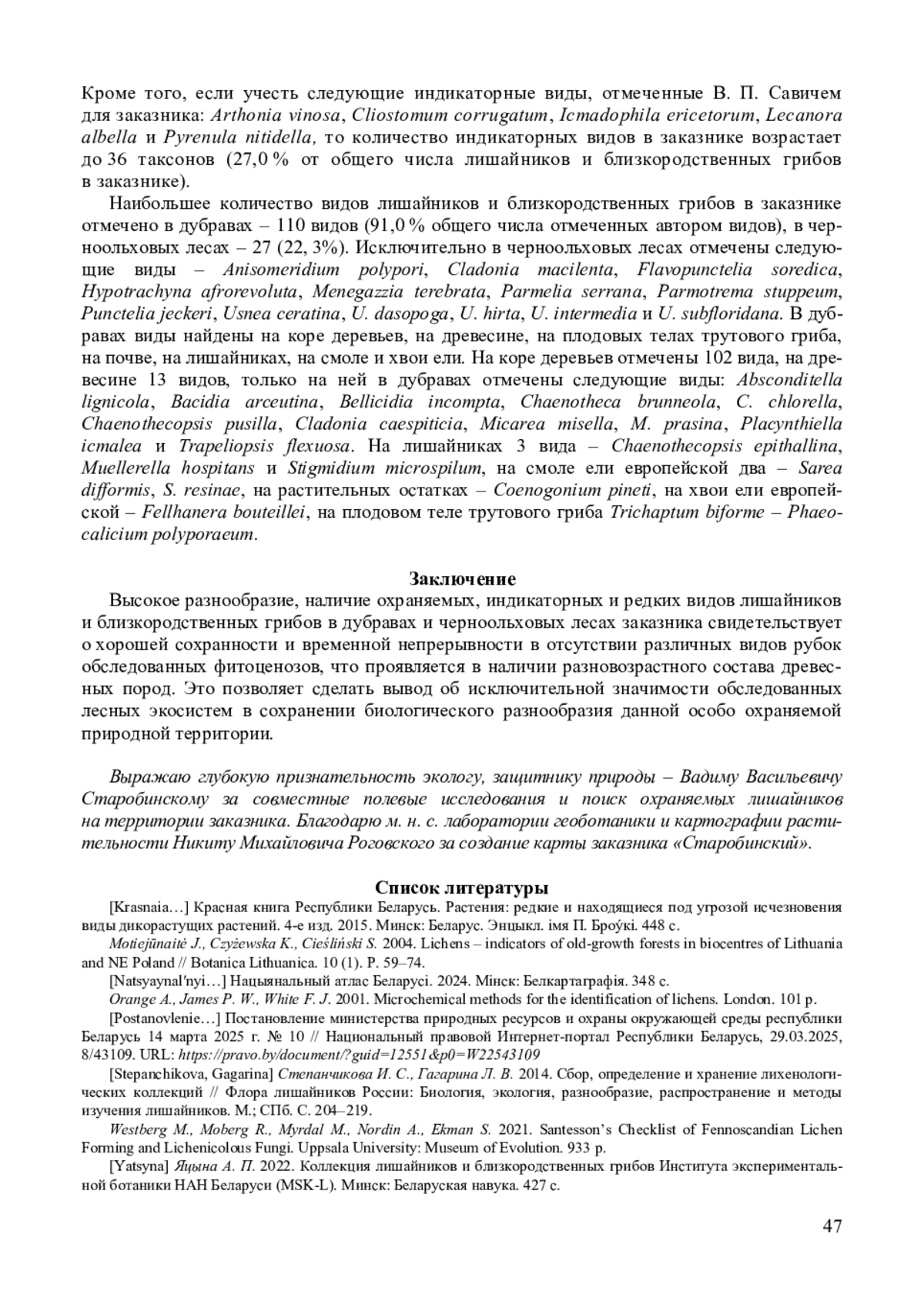 Статья: ЛИХЕНОБИОТА ДУБРАВ И ЧЕРНООЛЬХОВЫХ ЛЕСОВ ЗАКАЗНИКА «СТАРОБИНСКИЙ» (МИНСКАЯ ОБЛАСТЬ, БЕЛАРУСЬ) (2025)