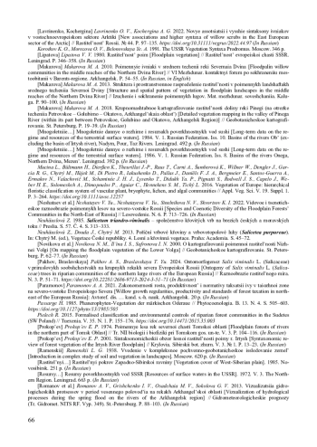 18. Лавриненко О. В., Кочергина А. Г. 2022. Новые ассоциации и высшие синтаксоны ивняков в восточноевропейском секторе Арктики // Растительность России. № 44. С. 97-135. DOI: 10.31111/vegrus/2022.44.97 EDN: JSFUMK