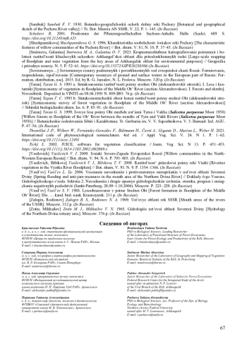 Сообщества с верхним ярусом, сформированным аллювиальными видами ив, – харак-терный компонент пойменной растительности Евразии (Horvat et al., 1974; Lipatova, 1980; Rastitel’nyi…, 1985; Golub, 1999; Akhtiamov, 2001; Vasilevich, 2009; Efimova, 2009; Mucina et al., 2016; Neshataev et al., 2022; и др.). В поймах равнинных рек Европы широко известны леса, сформированные аллювиальными ивами Salix alba L., S. fragilis L., S. purpurea L. (Horvat et al., 1974; Novikova et al., 2000; Schubert, 2001; Neuhäuslová et al., 2013; Bulokhov, Semenishchenkov, 2015; Pielech, 2015; Mucina et al., 2016; Golub, Bondareva, 2017). Но ареа-лы этих видов и формируемых ими сообществ не распространяются на северо-восток Евро-пейской России (Arealy…, 1977).