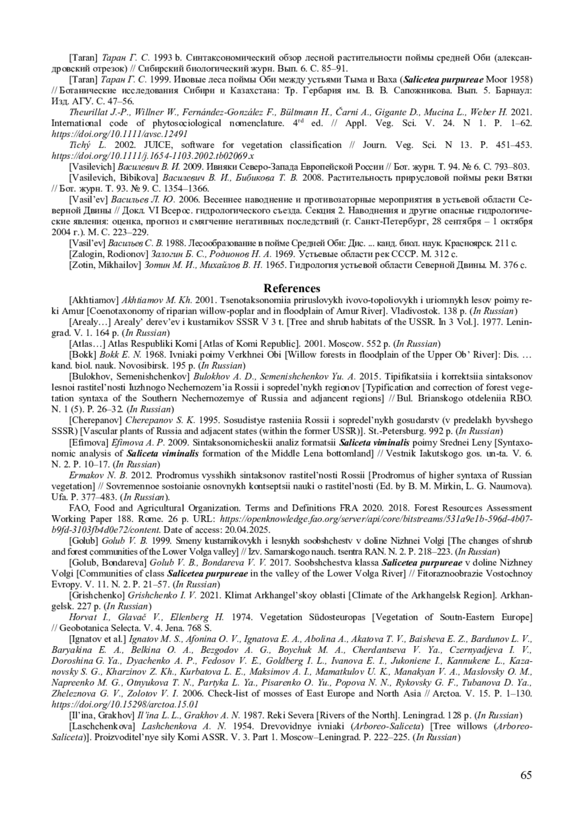 42. Шушпанникова Г.С. 1996. Характеристика сообществ ивняков реки Печоры // Бот. журн. Т. 81. № 10. С. 37-45.