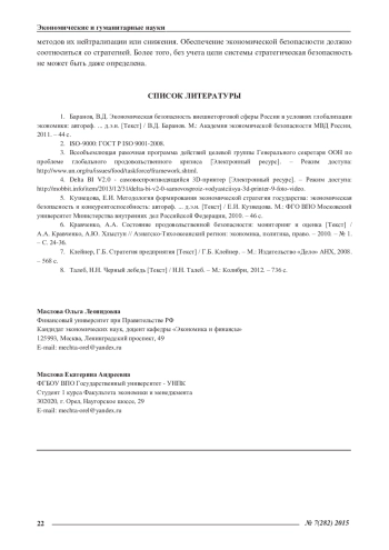 5. Кузнецова, Е.И. Методология формирования экономической стратегии государства: экономическая безопасность и конкурентоспособность: автореф.. д.э.н. /Е.И. Кузнецова. М.: ФГО ВПО Московский университет Министерства внутренних дел Российской Федерации, 2010. -46 с. EDN: ZODBLF