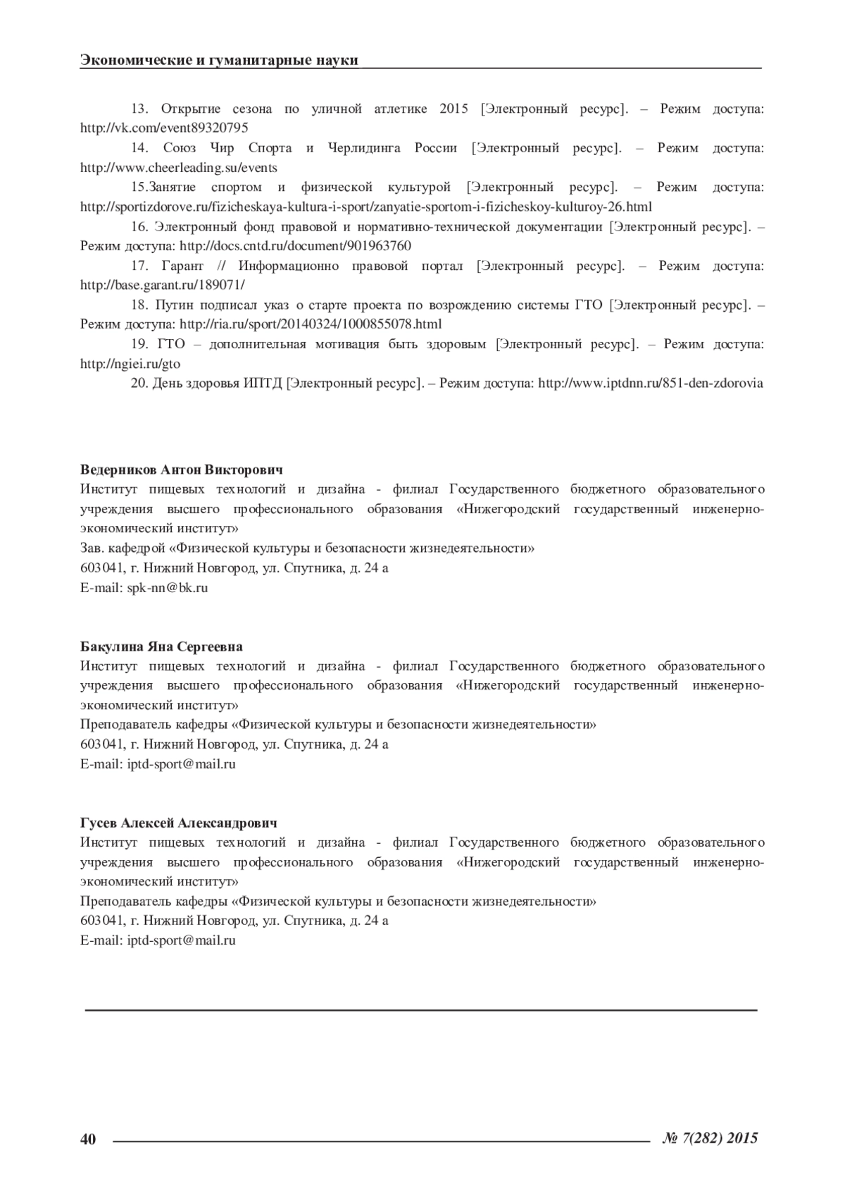 19. ГТО - дополнительная мотивация быть здоровым [Электронный ресурс]. - Режим доступа: http://ngiei.ru/gto.