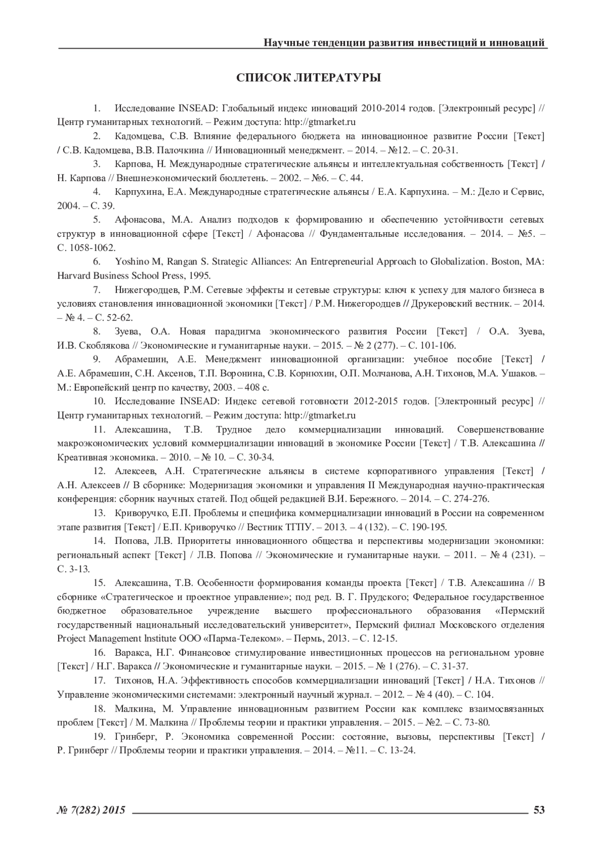 18. Малкина, М. Управление инновационным развитием России как комплекс взаимосвязанных проблем /М. Малкина//Проблемы теории и практики управления. -2015. -№2. -С. 73-80. EDN: UDEDKJ