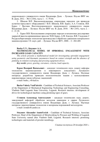 3. Бурко В.В. Использование спироидных передач в механизмах регулировки закрытой высоты кривошипных прессов / В.В. Бурко, А.М. Каплун, В.В. Гладушин // Ресурсосберегающие технологии производства и обработки давлением материалов в машиностроении: Сб. науч. раб. - Луганск: Изд-во ВГУ, 2000. - С. 202-205.