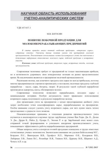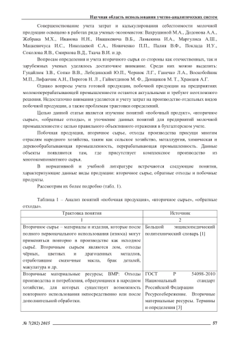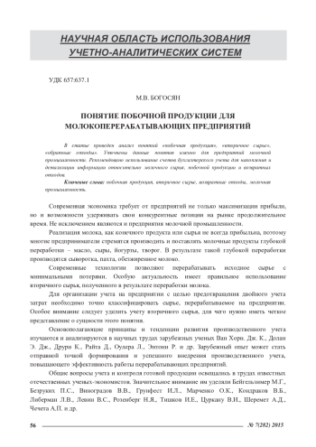 В статье проведен анализ понятий «побочная продукция», «вторичное сырье», «обратные отходы». Уточнены данные понятия именно для предприятий молочной промышленности. Рекомендовано использование счетов бухгалтерского учета для накопления и детализации информации относительно молочного сырья, побочной продукции и возвратных отходов