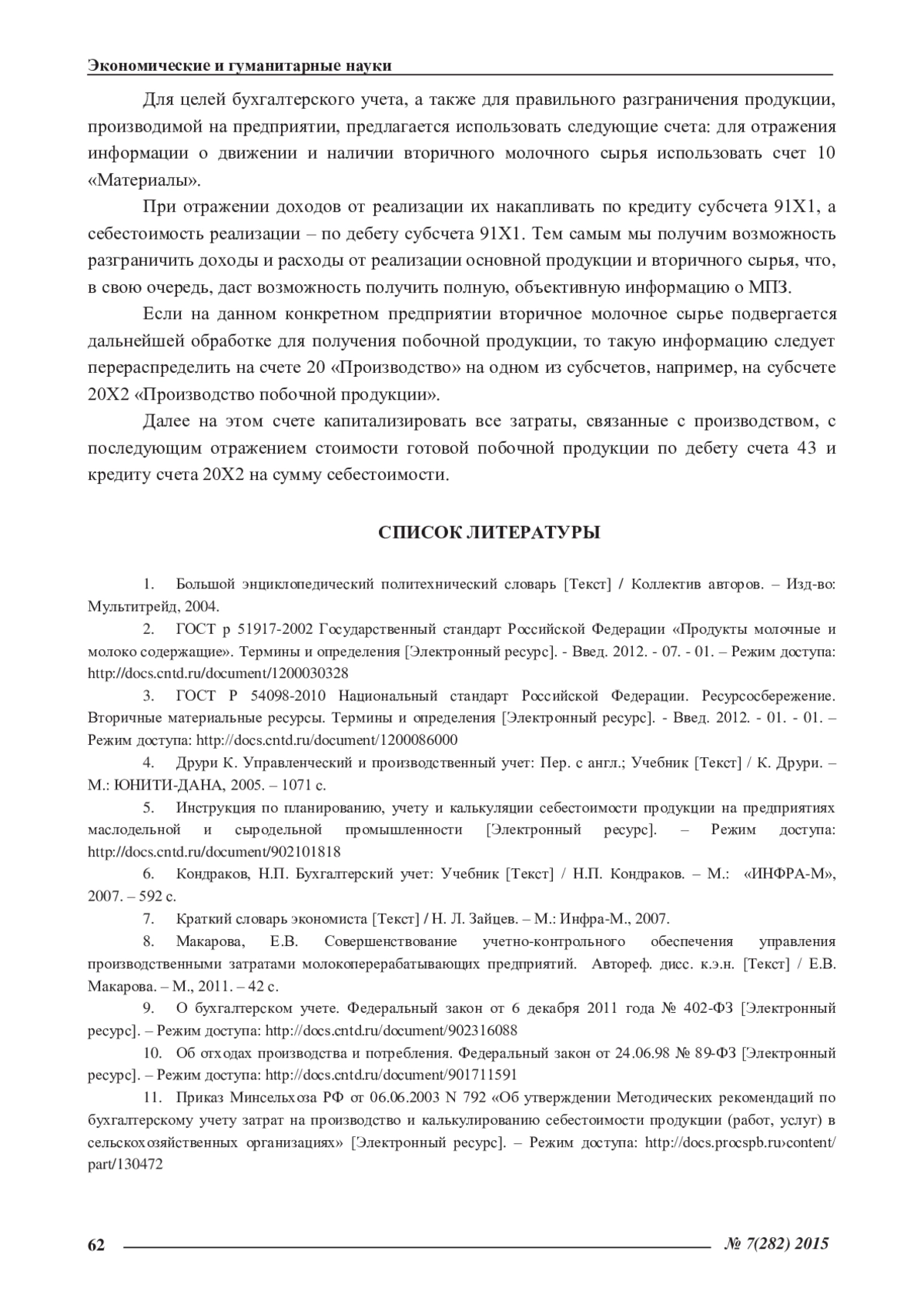 8. Макарова, Е.В. Совершенствование учетно-контрольного обеспечения управления производственными затратами молокоперерабатывающих предприятий. Автореф. дисс. к.э.н. [Текст] / Е.В. Макарова. - М., 2011. - 42 с. EDN: QFQECB