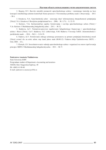 7. Черных, И.Н. Совершенствование ведения управленческого учета в организации на основе использования принципов МСФО // Международный бухгалтерский учет. - 2011. - № 37. EDN: OGDQCN