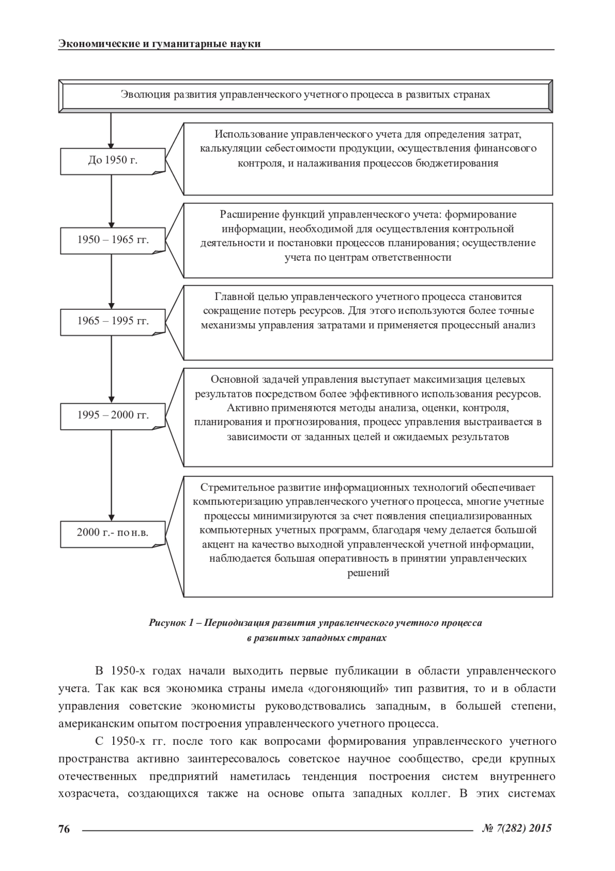 Рост процессов глобализации и ожесточение международной конкуренции сделали безальтернативным вариант развития российской экономики в инновационном направлении. Конкурентоспособность страны на мировой арене становится возможна только благодаря высокой инновационной активности отечественных предприятий, смелости руководителей при внедрении новых подходов в управлении и адаптации предприятия к современным вариантам построения управленческого учетного процесса. Именно поэтому построение инновационного управленческого учетного пространства на микроуровне и разработка новых вариантов ведения управленческого учета являются основой стабильности и процветания предприятий, а управленческий учетный процесс приобретает системный характер на всех уровнях управления
