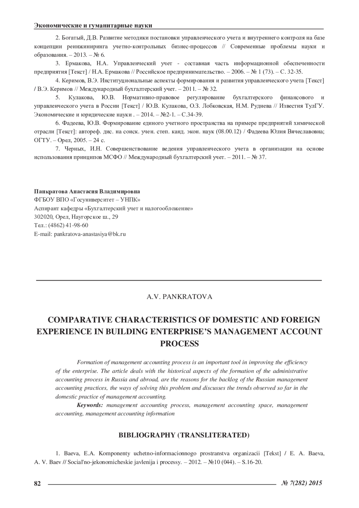 4. Керимов, В.Э. Институциональные аспекты формирования и развития управленческого учета [Текст] / В.Э. Керимов // Международный бухгалтерский учет. - 2011. - № 32. EDN: NYGJGL
