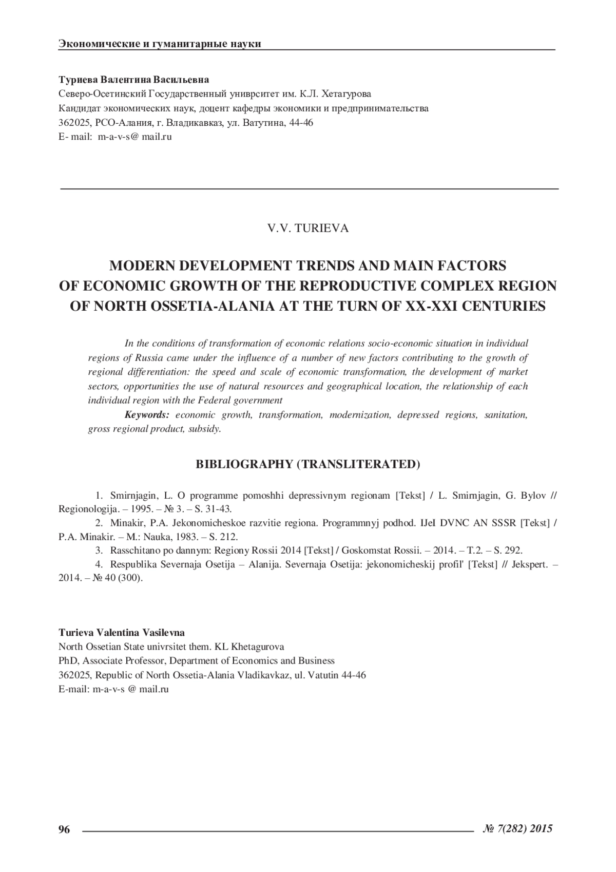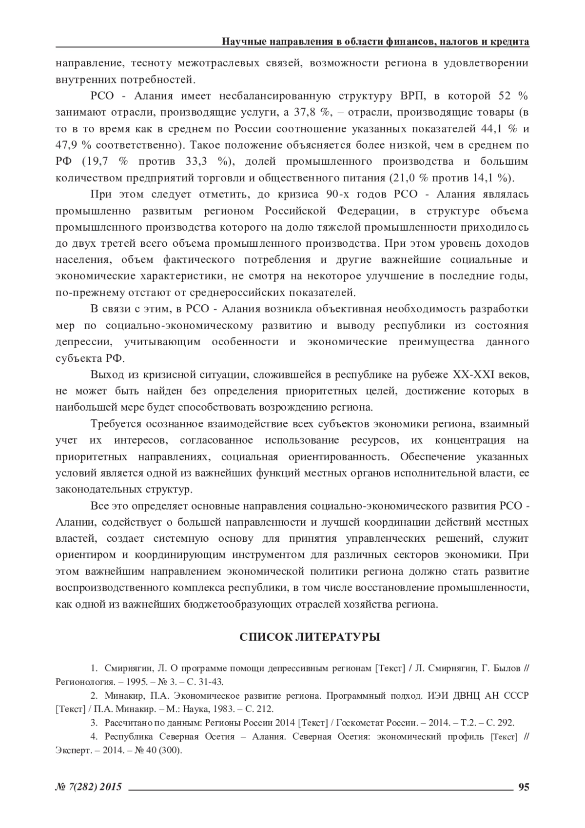 4. Республика Северная Осетия - Алания. Северная Осетия: экономический профиль [Текст] // Эксперт. - 2014. - № 40 (300).