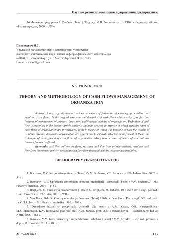 2. Бочаров, В.В. Управление денежным оборотом предприятий и корпораций /В.В. Бочаров. -М.: Финансы и статистика, 2001. -144 с. EDN: TLLFOJ